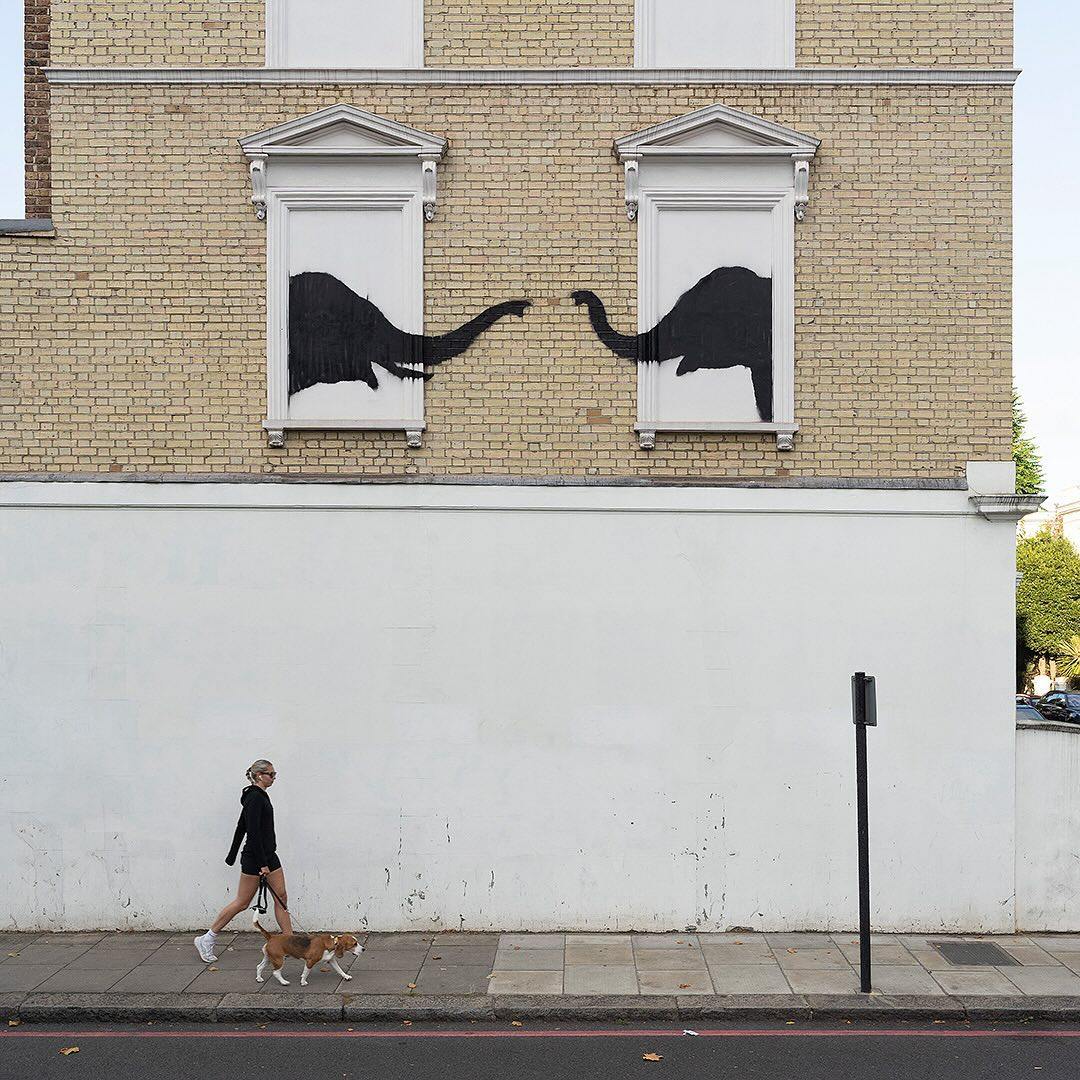 Не встигли фанати Бенксі обговорити цю подію, як наступного дня він виклав знімок нового малюнка на стіні будинку на вулиці Едіт Террас у Челсі. На ньому зображені силуети двох слонів, які немов визирають із сусідніх вікон і тягнуться один до одного хоботами.
