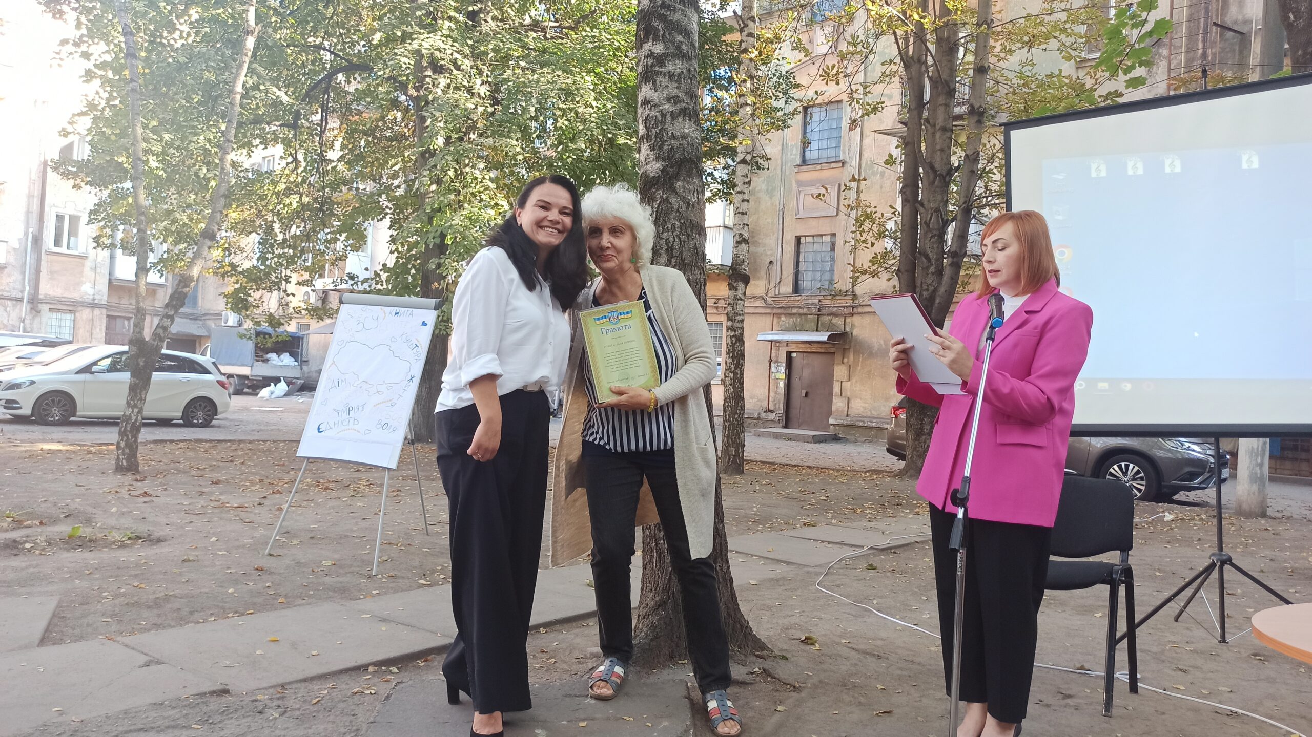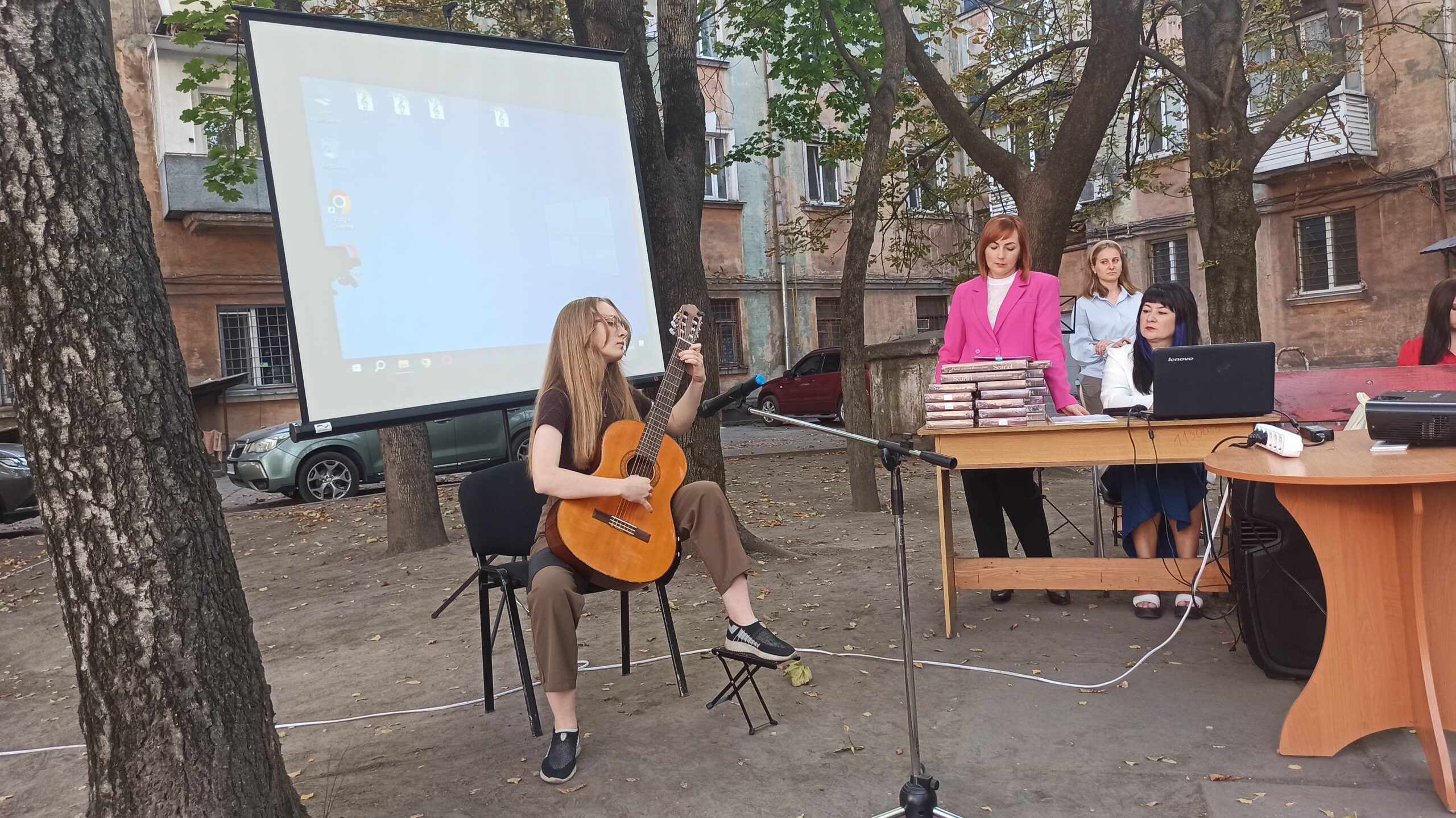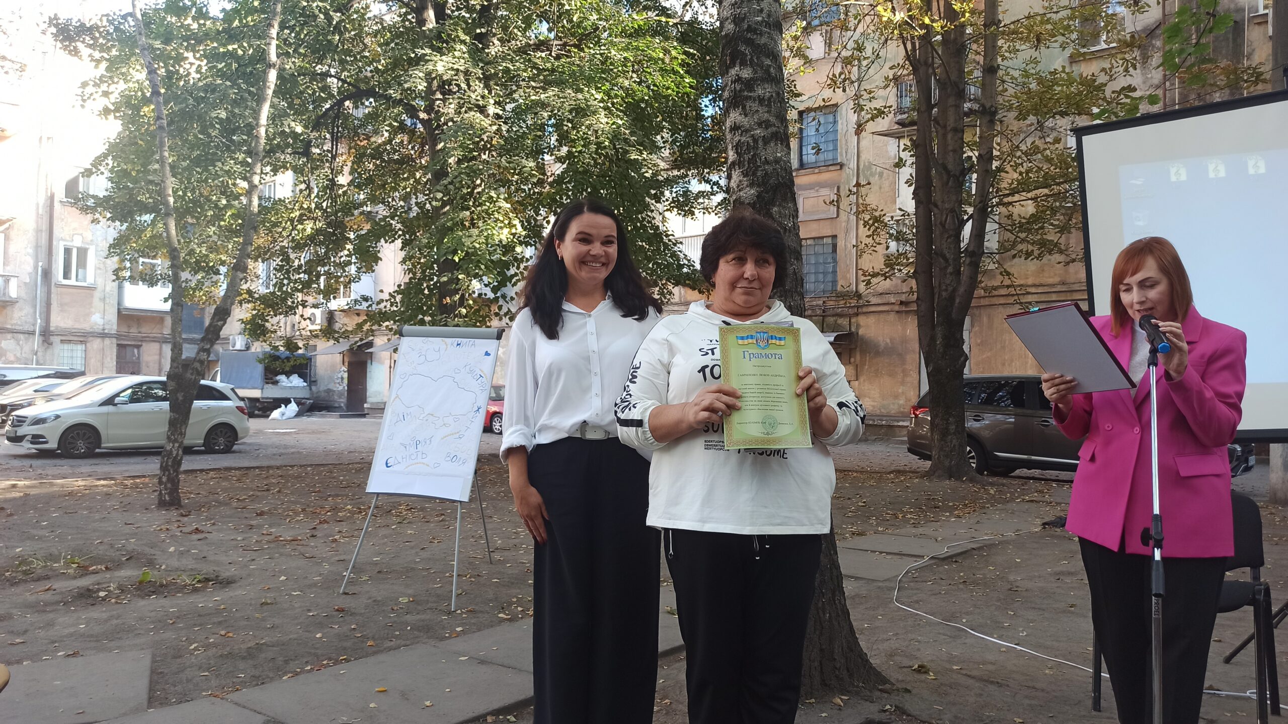 Відзначити своє свято бібліотекарі вирішили креативно і покинувши зали Бібліотеки на Шевченка і розташувалися просто неба у тіні дерев у затишному внутрішньому дворику будинку, у якому вона розташована. Це додало заходу якоїсь легкості та зробило офіційний захід по справжньому теплим і родинним святом.