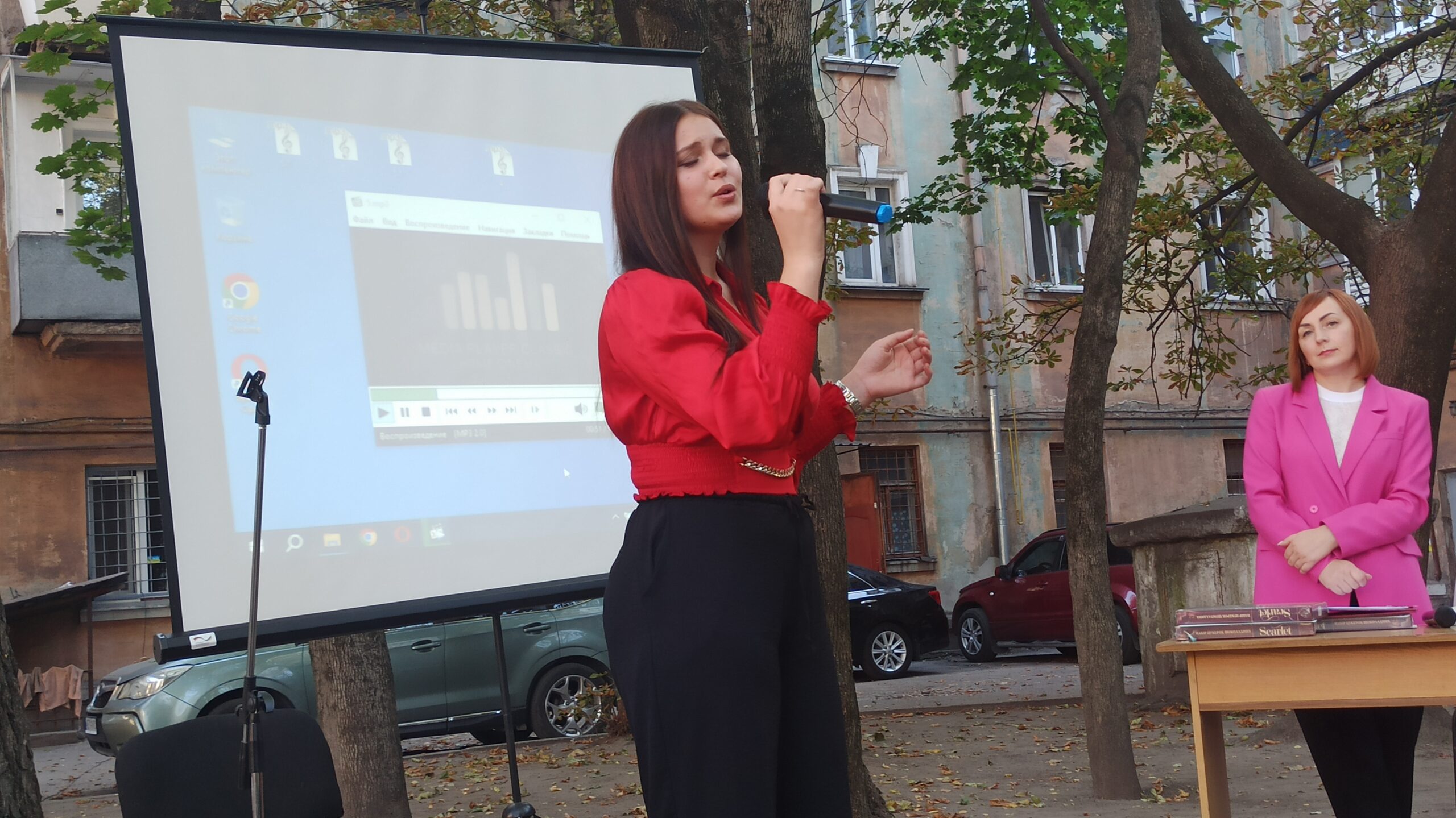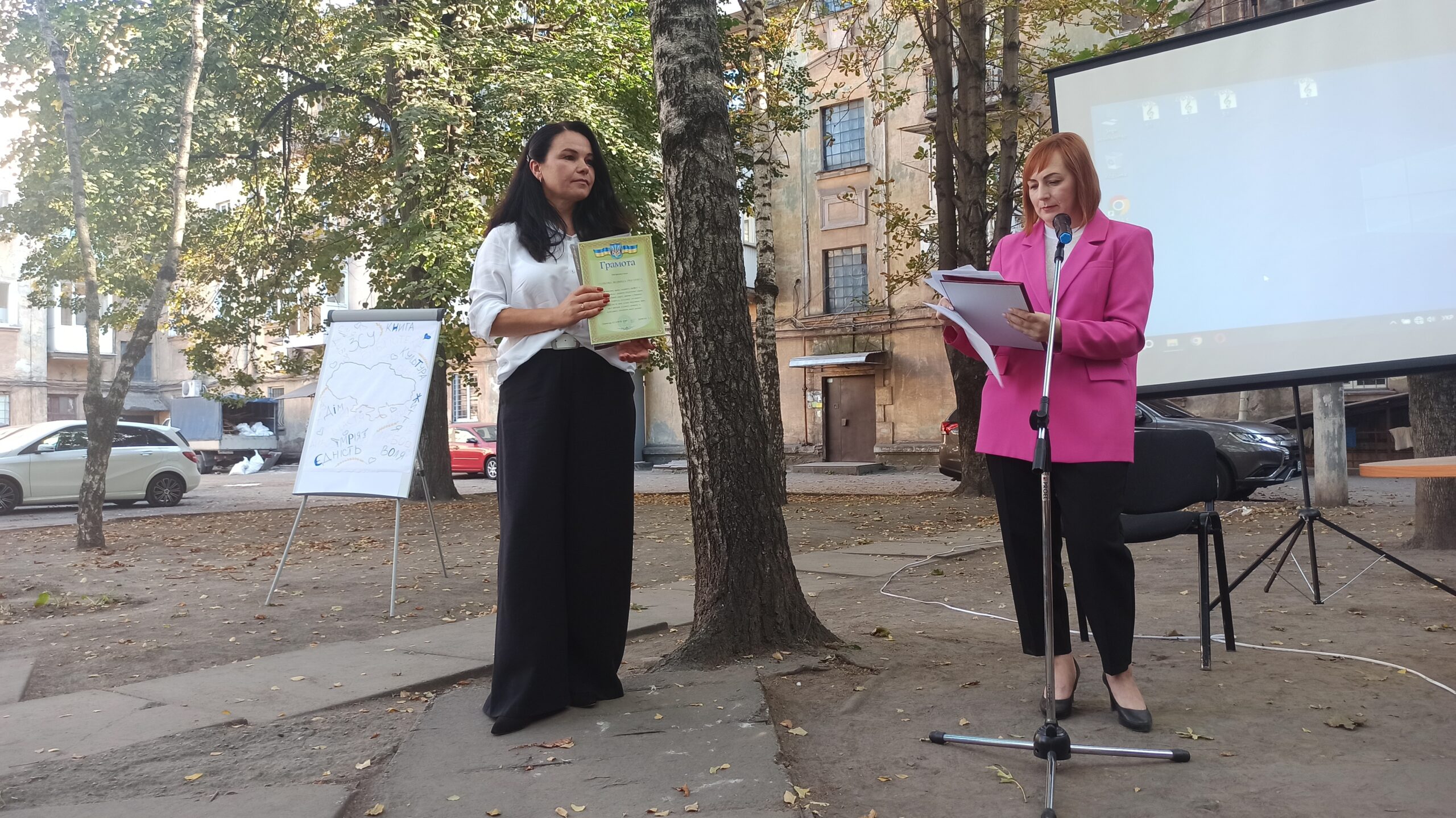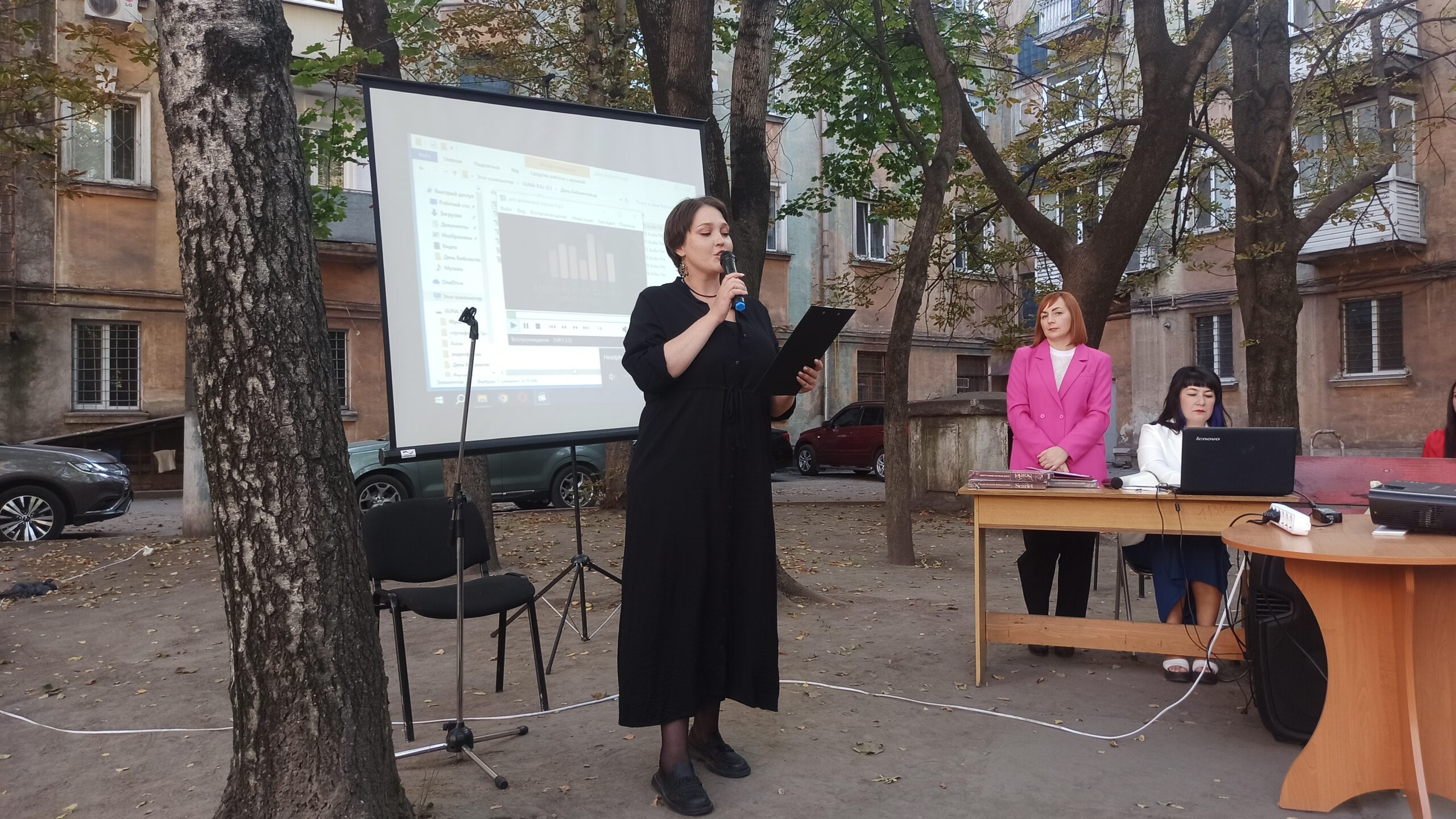 Відзначити своє свято бібліотекарі вирішили креативно і покинувши зали Бібліотеки на Шевченка і розташувалися просто неба у тіні дерев у затишному внутрішньому дворику будинку, у якому вона розташована. Це додало заходу якоїсь легкості та зробило офіційний захід по справжньому теплим і родинним святом.