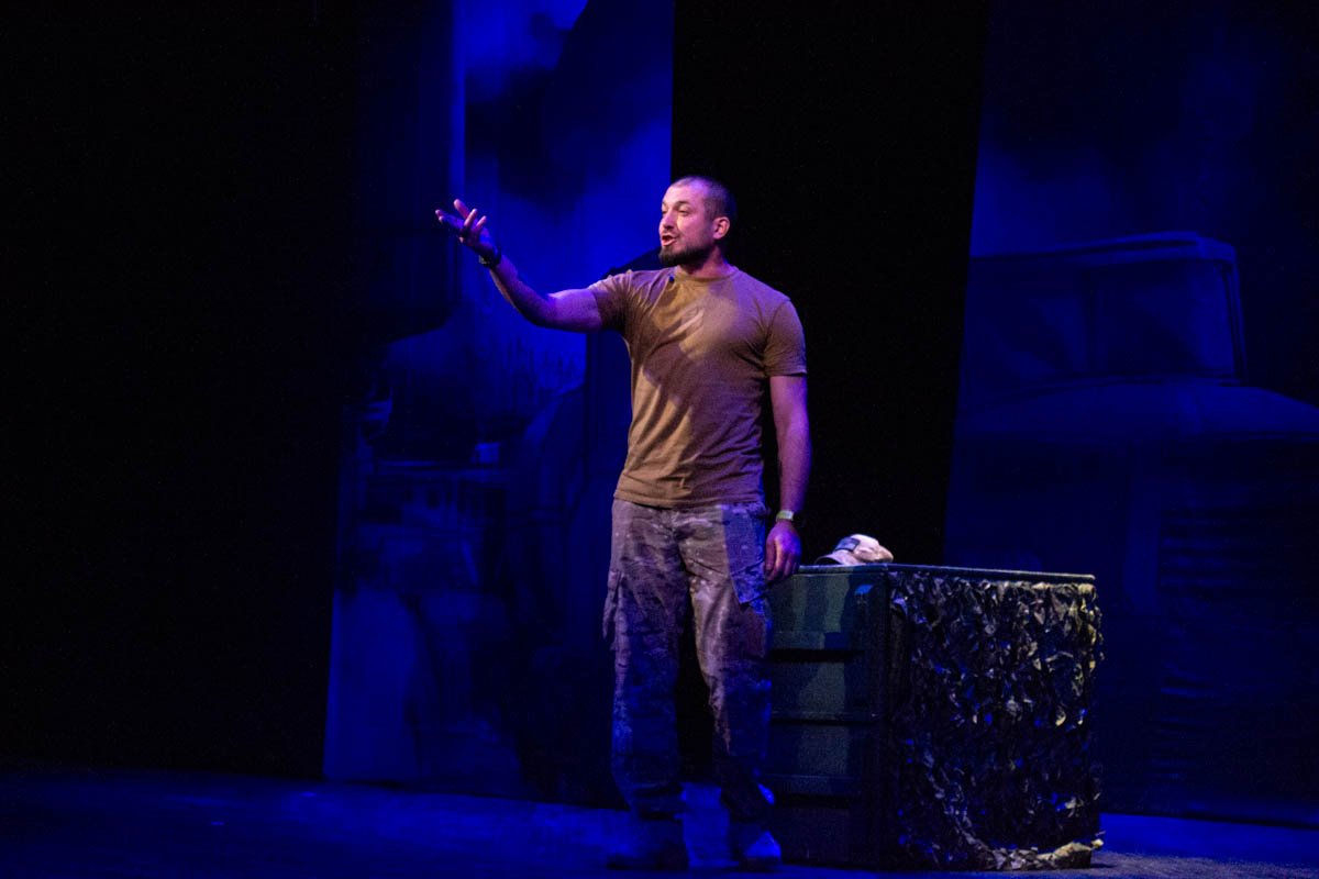 Поєднуючи безперечний талант актора і багатий бойовий досвід, Євген Авдєєнко упродовж майже двох годин розповідав присутнім у залі глядачам неймовірні, але реальні історії учасником яких був він сам та його побратими. Він розказував про особливості побуту наших захисників на фронті, коли інколи немає часу навіть на те, щоб поїсти та поспати, про особливе почуття драйву, яке прокидається у бійців під час штурмових операцій, про нестерпне військове хуліганство і небезпечні пригоди, про те, як складно на війні без почуття гумору і як у безвихідних ситуаціях рятують віра, любов, тяга до життя, підтримка побратимів і щирий сміх.