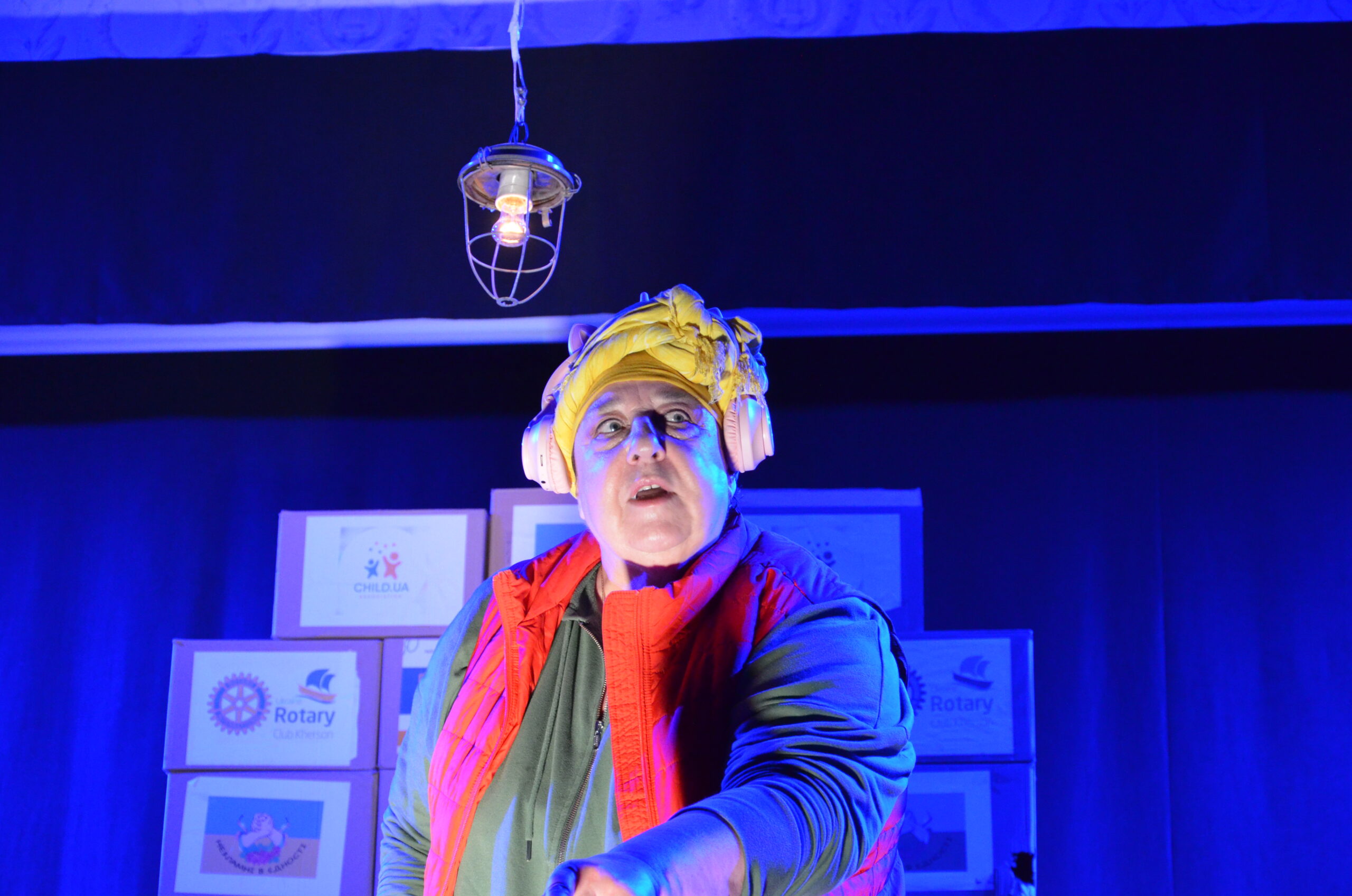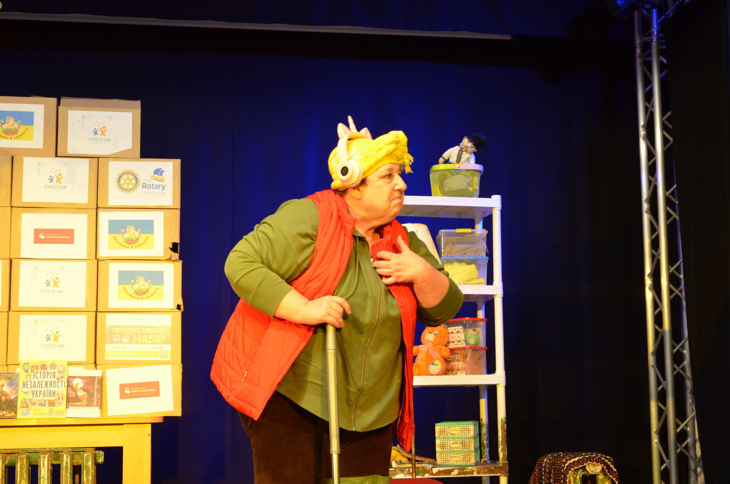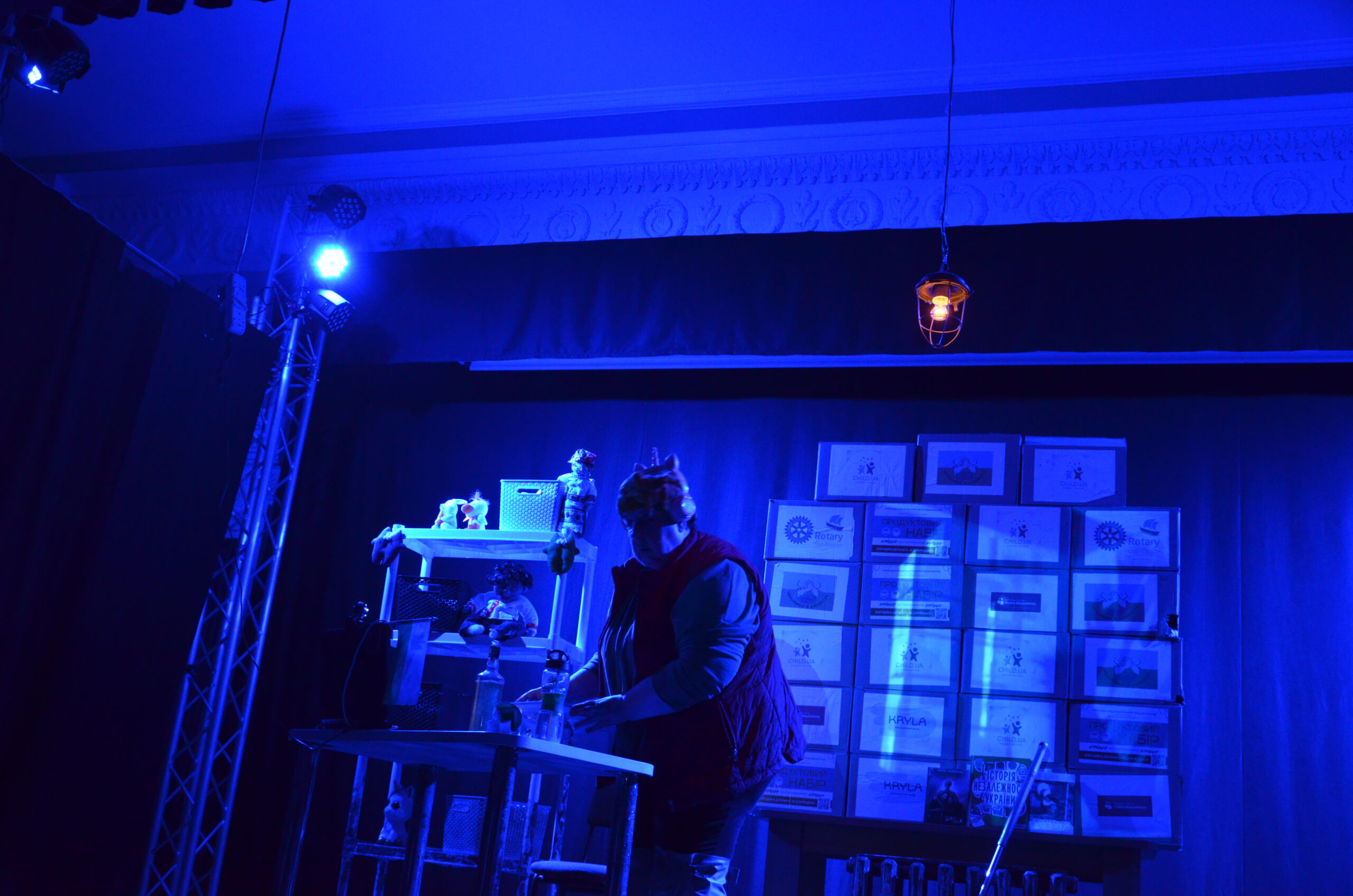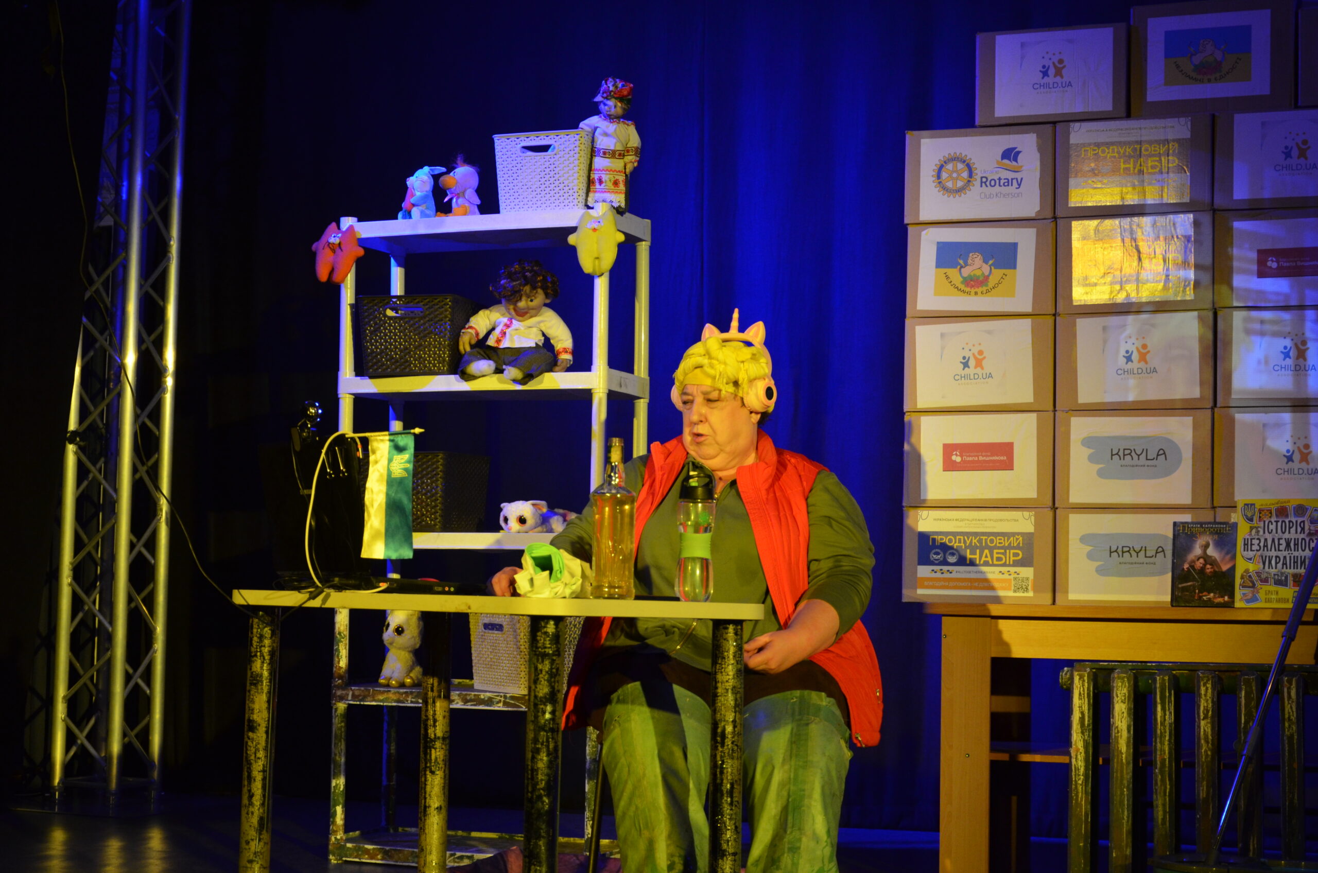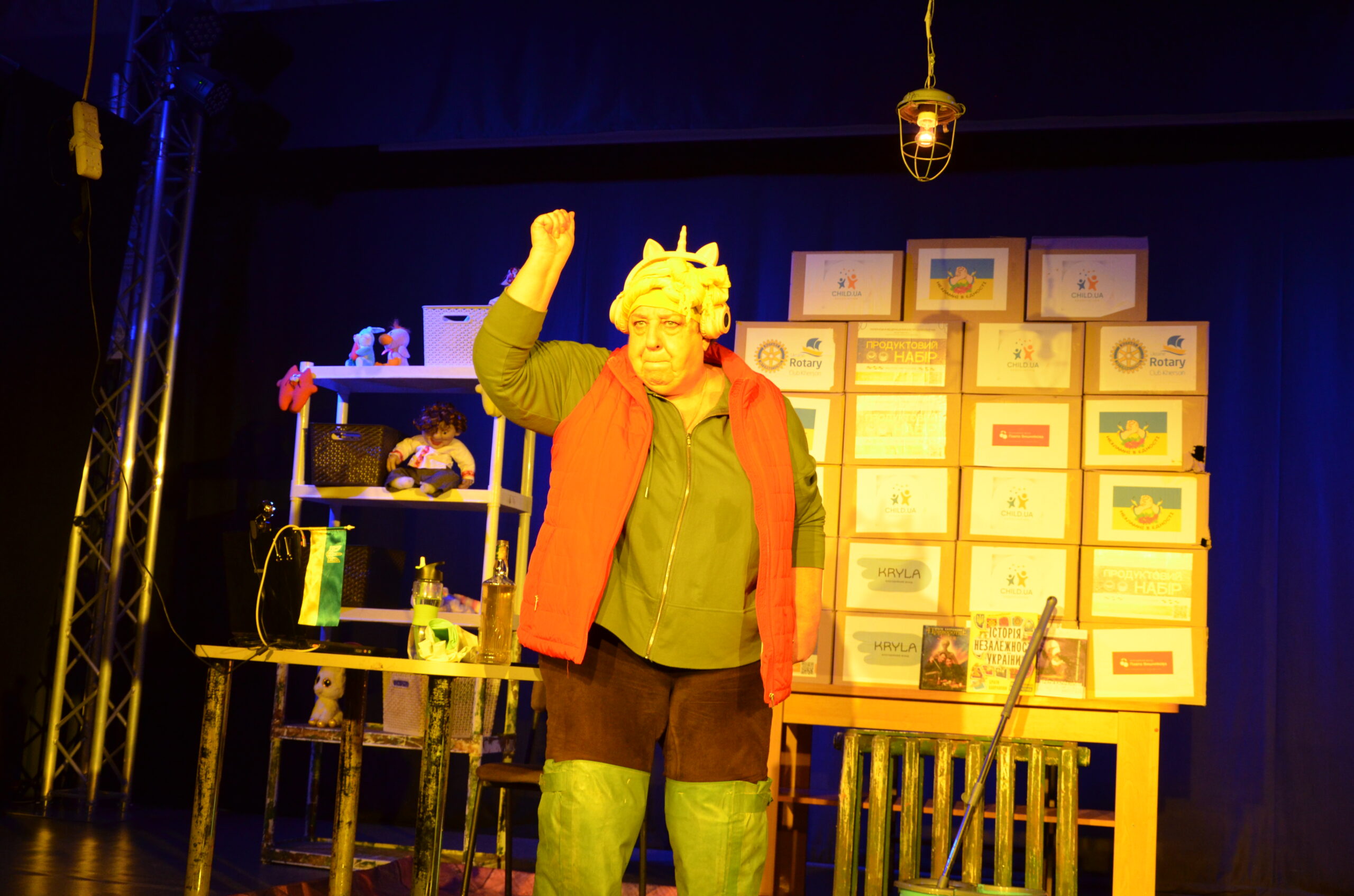 Російський прапор на вході та вода на сцені, в якій плавають іграшки та книжки. Саме це перше, що впало в око відвідувачам вистави “Буде тобі, враже, так, як відьма скаже”, в якій через історію однієї літньої жінки показано що довелося пережити мешканцям Херсона під час окупації міста російськими військами та в яких складних умовах доводиться їм жити після звільнення міста від окупантів.