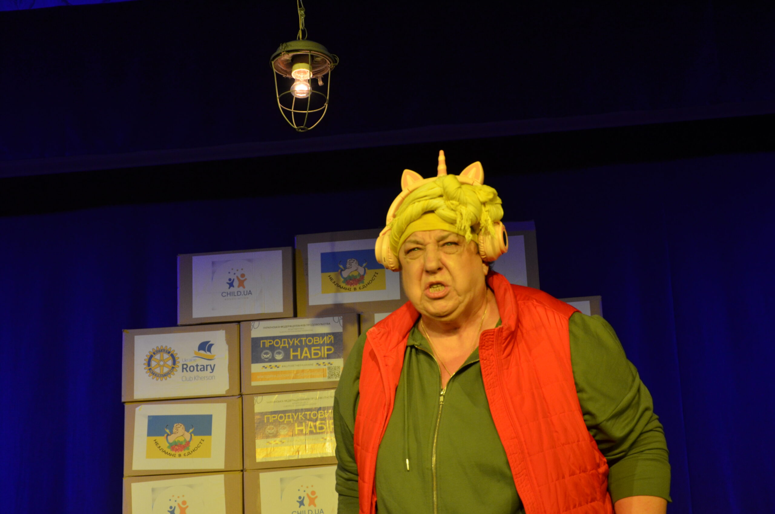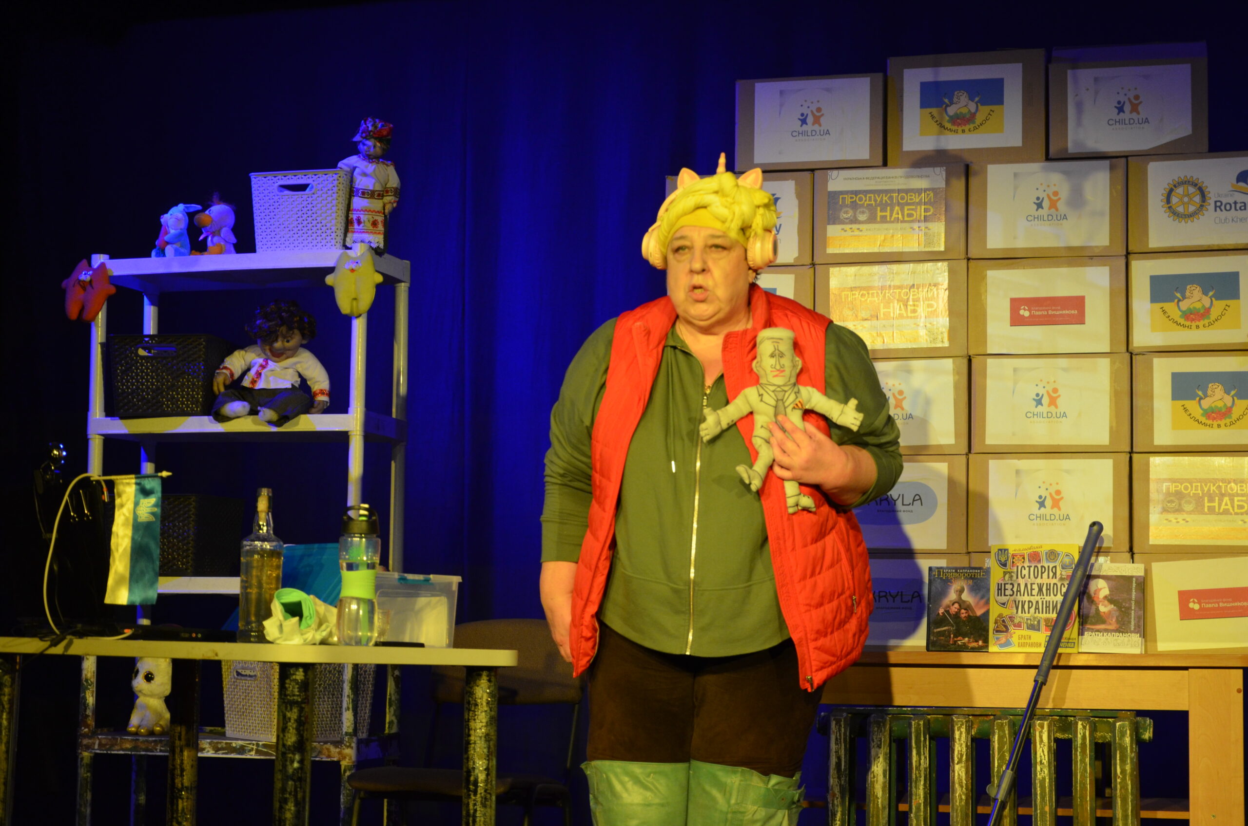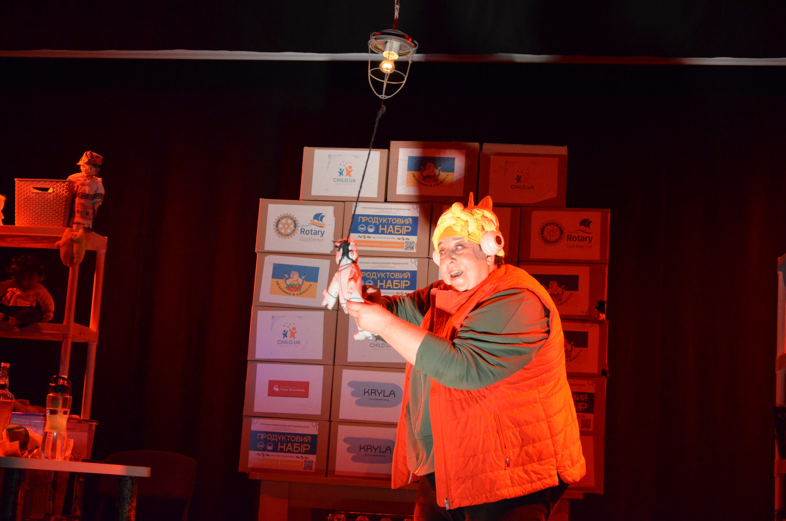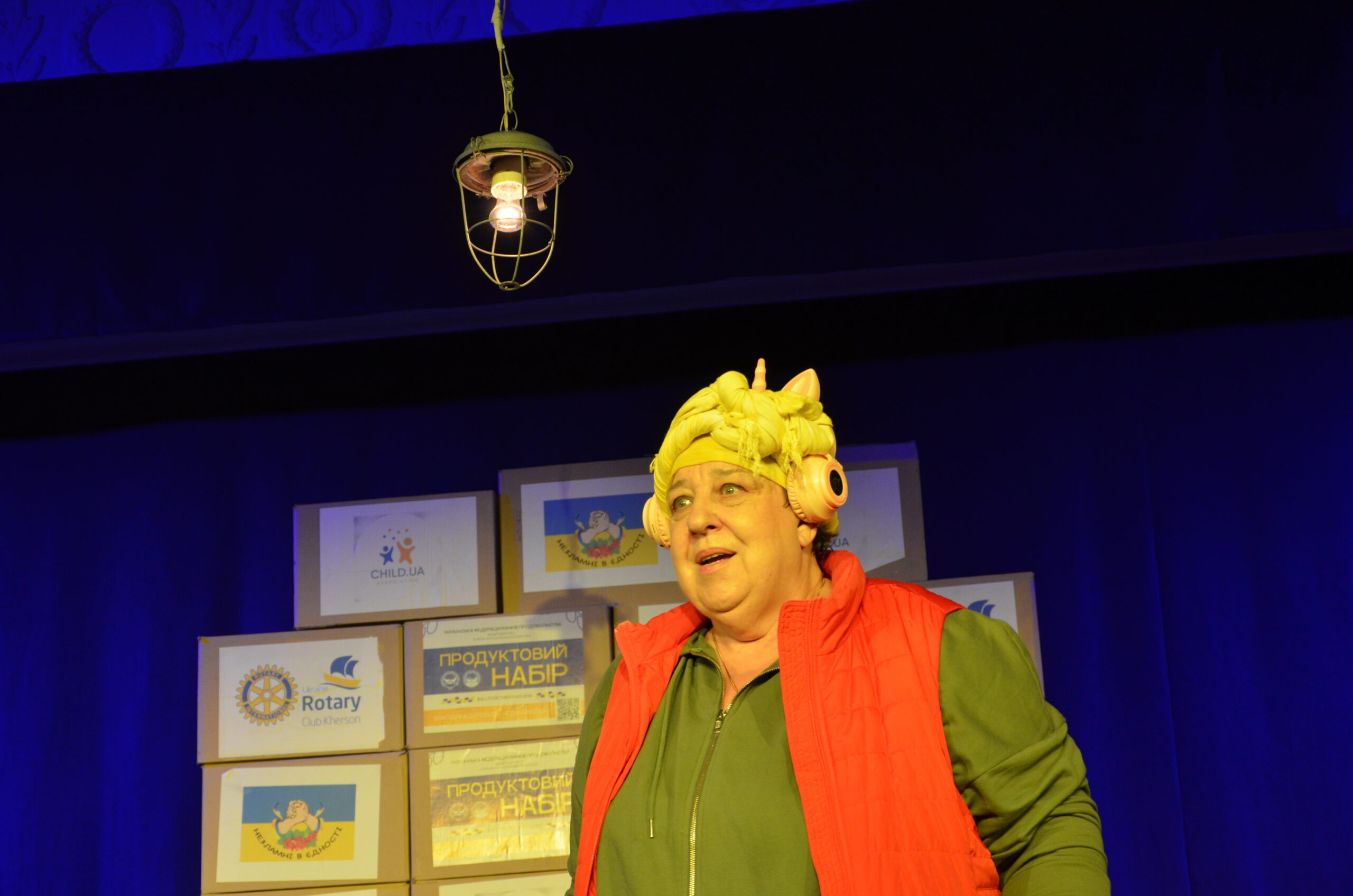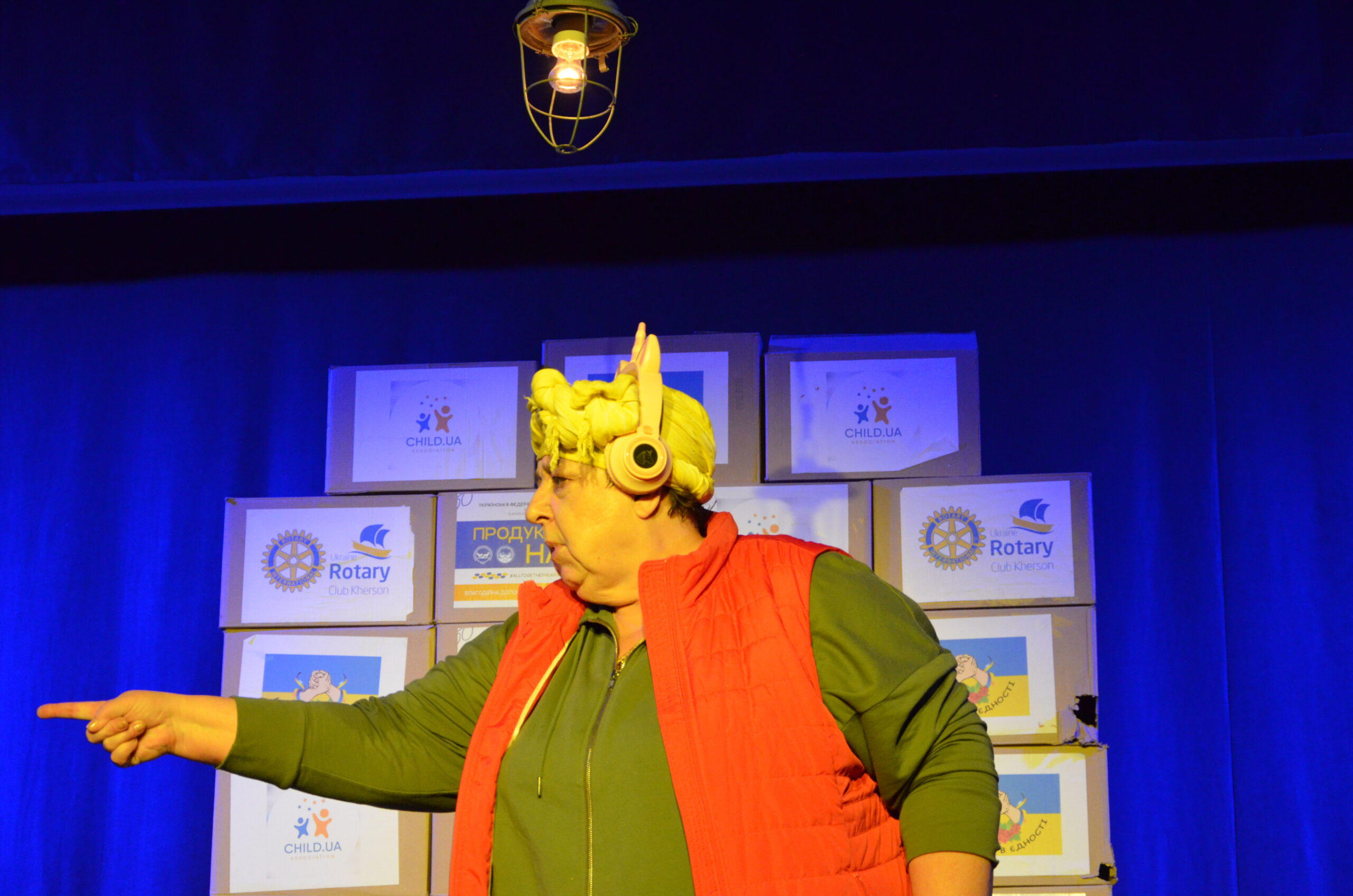 Російський прапор на вході та вода на сцені, в якій плавають іграшки та книжки. Саме це перше, що впало в око відвідувачам вистави “Буде тобі, враже, так, як відьма скаже”, в якій через історію однієї літньої жінки показано що довелося пережити мешканцям Херсона під час окупації міста російськими військами та в яких складних умовах доводиться їм жити після звільнення міста від окупантів.