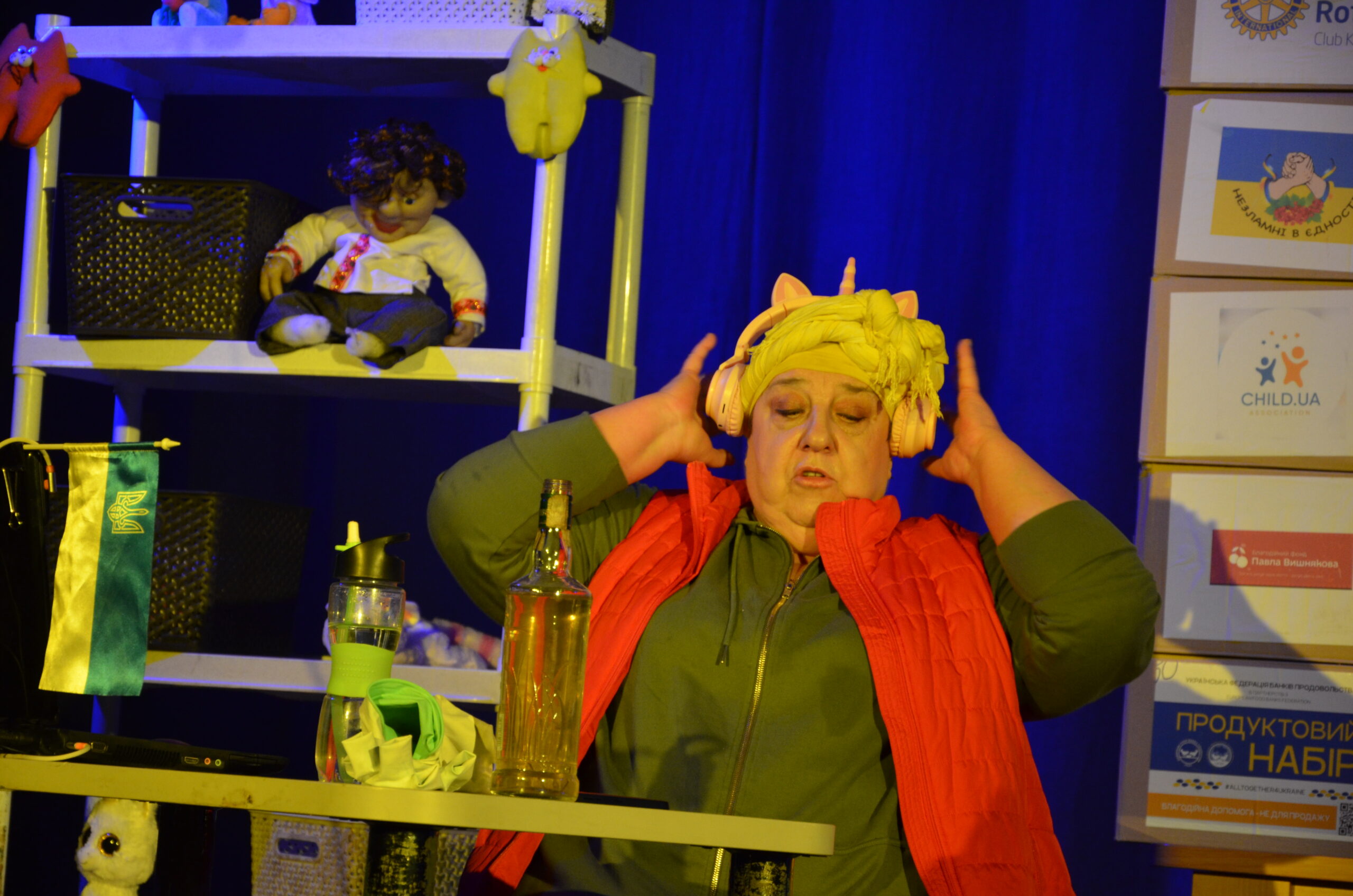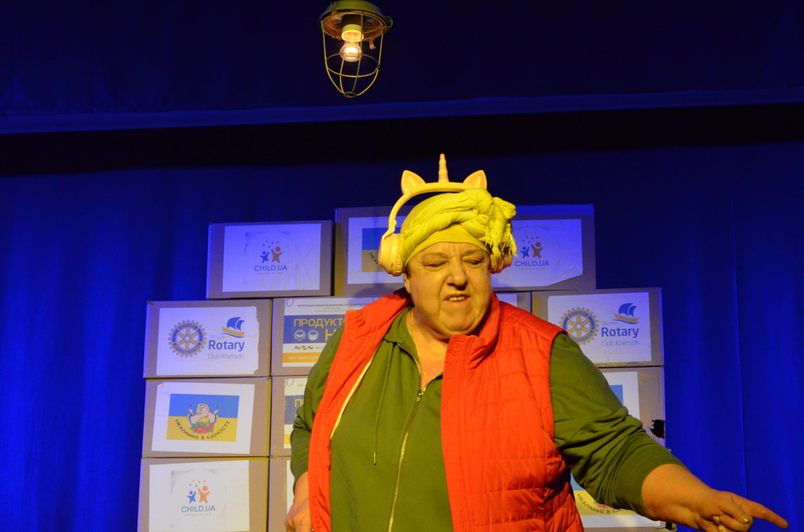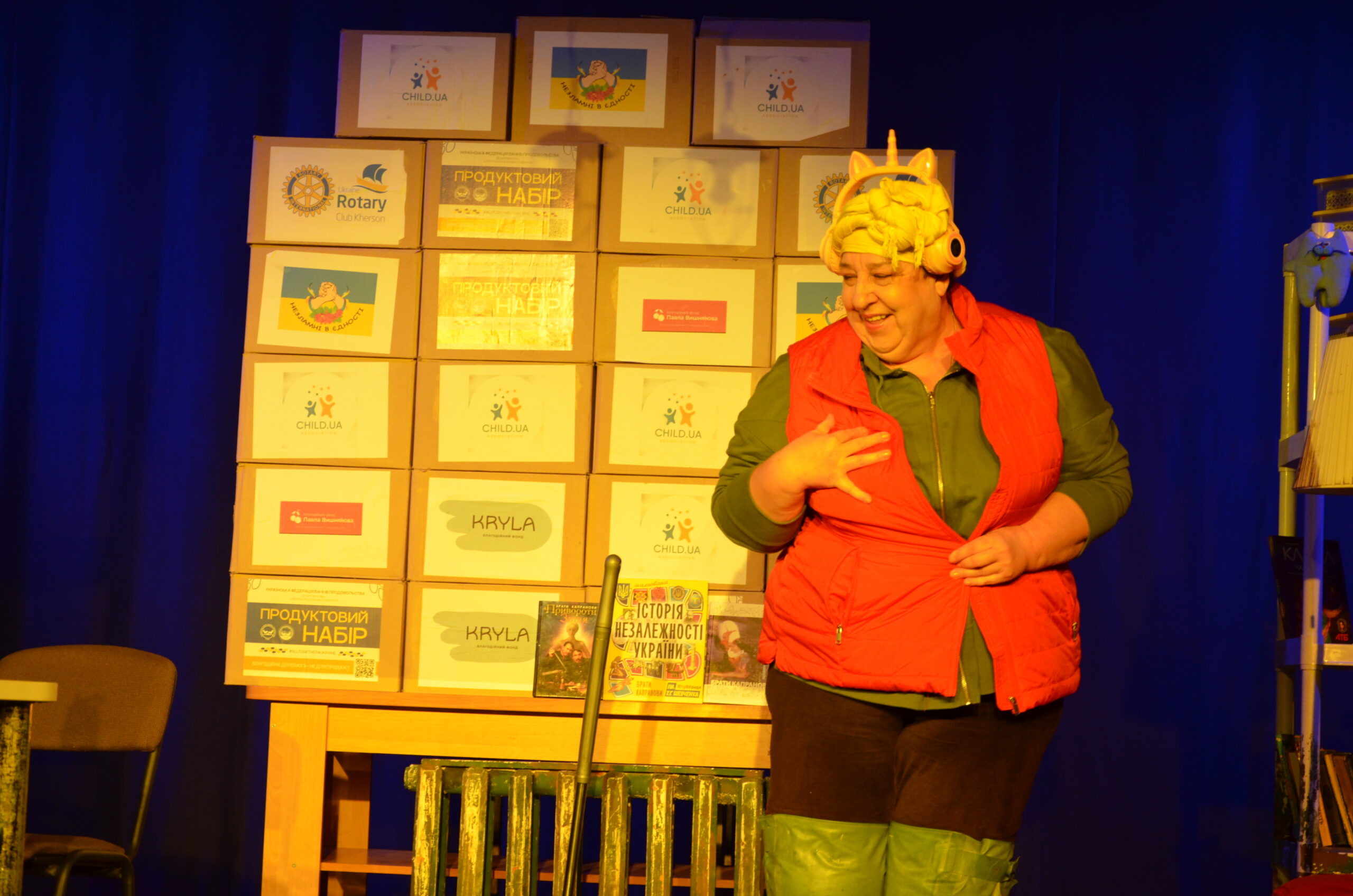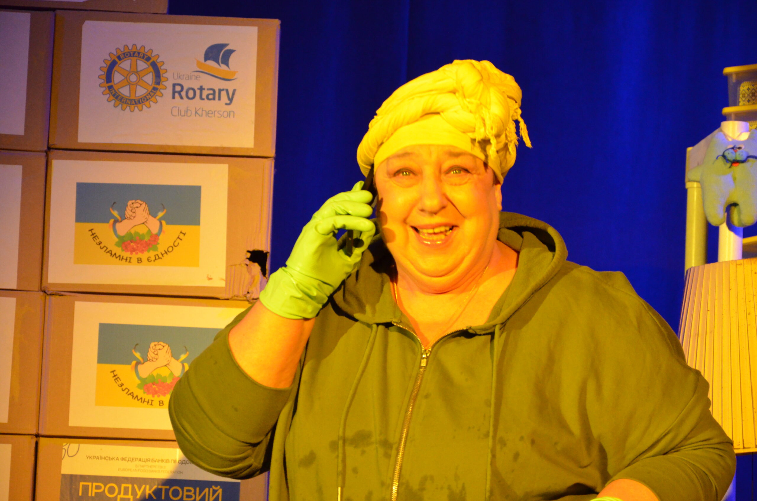 Російський прапор на вході та вода на сцені, в якій плавають іграшки та книжки. Саме це перше, що впало в око відвідувачам вистави “Буде тобі, враже, так, як відьма скаже”, в якій через історію однієї літньої жінки показано що довелося пережити мешканцям Херсона під час окупації міста російськими військами та в яких складних умовах доводиться їм жити після звільнення міста від окупантів.