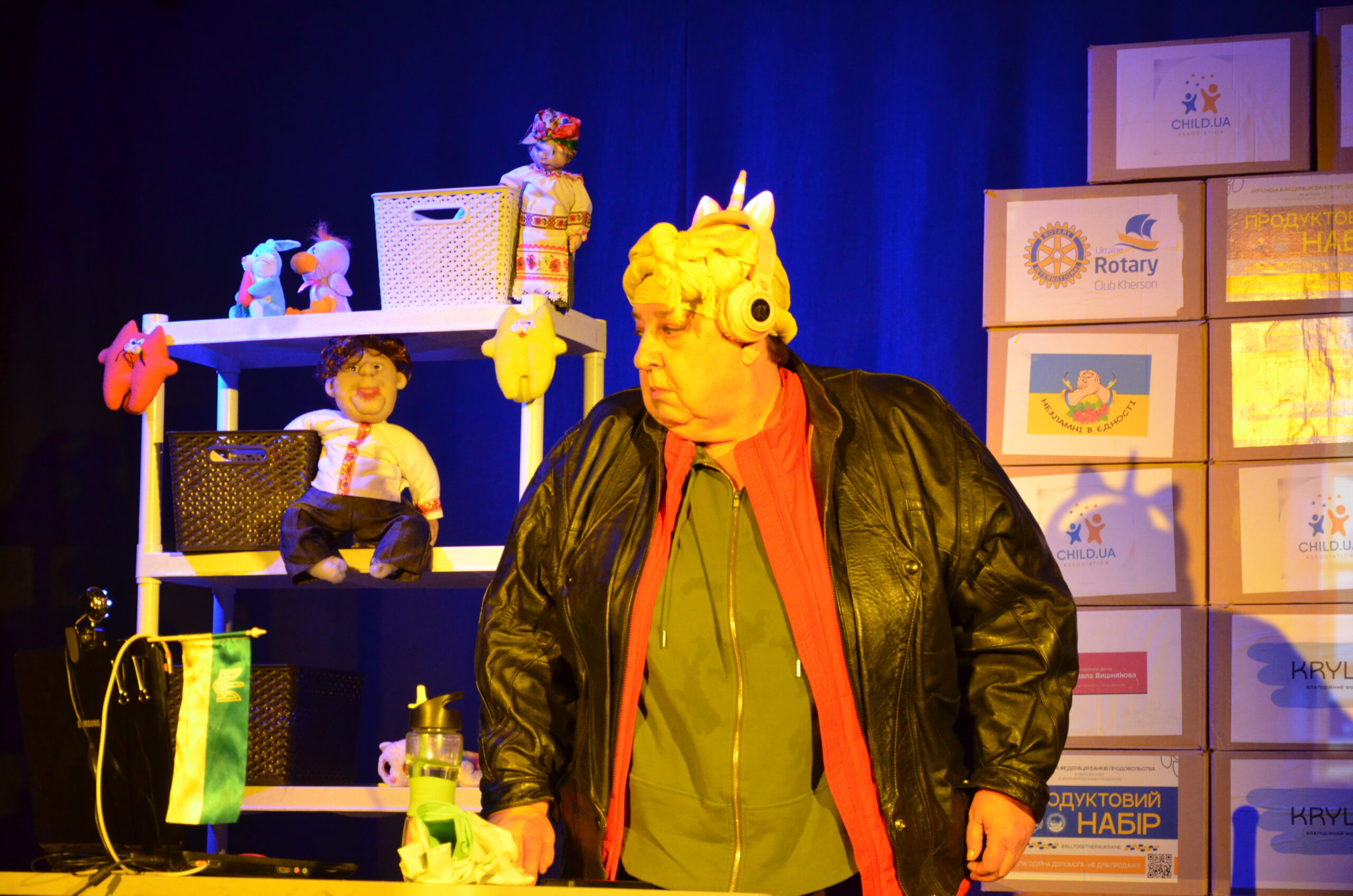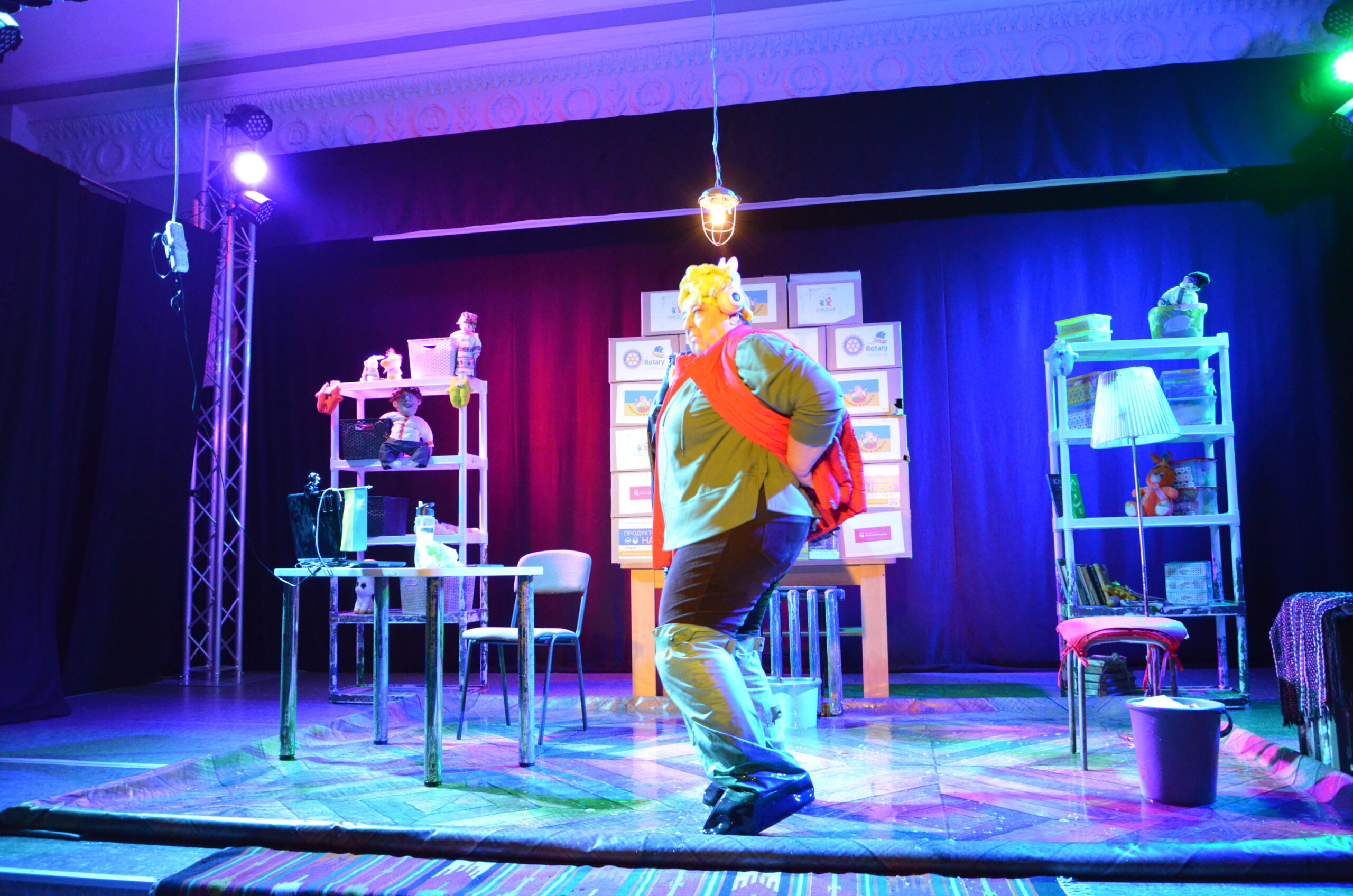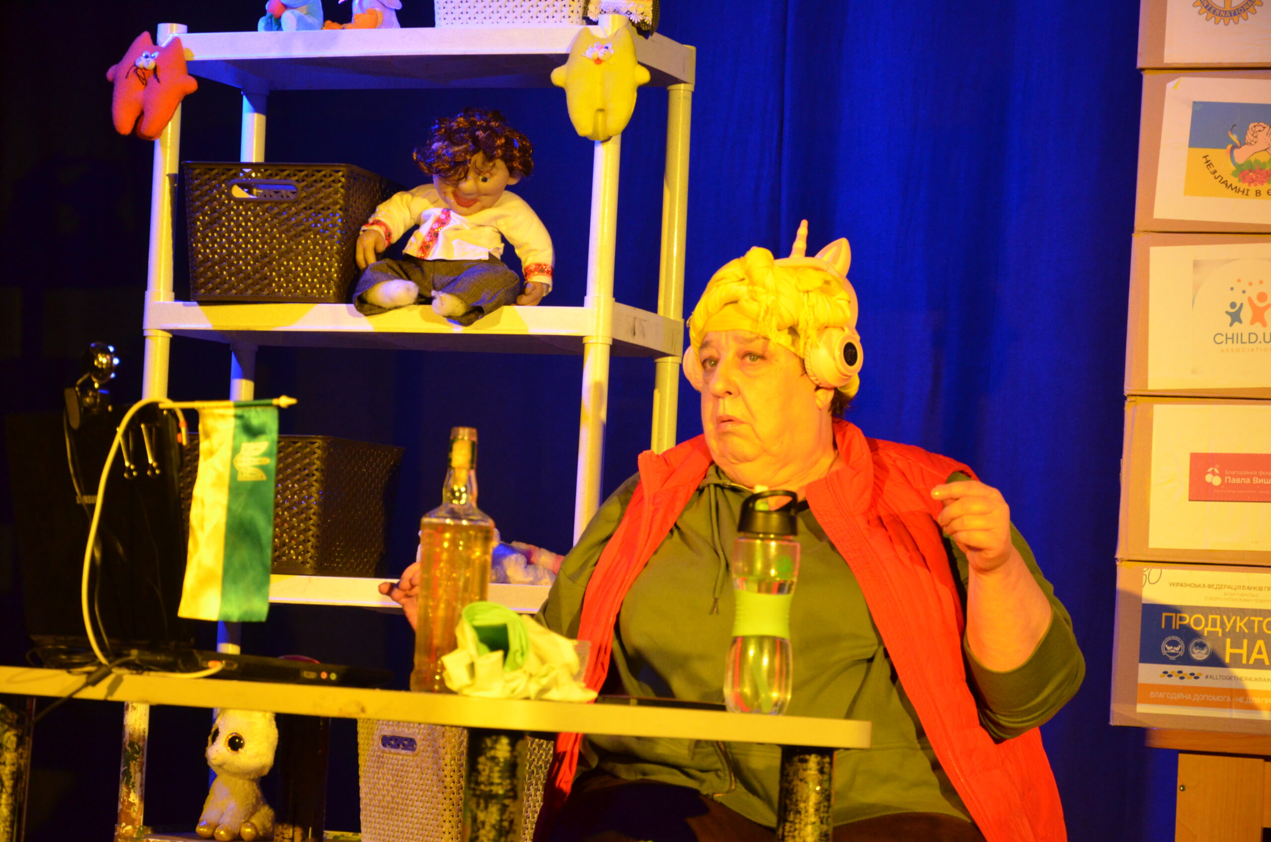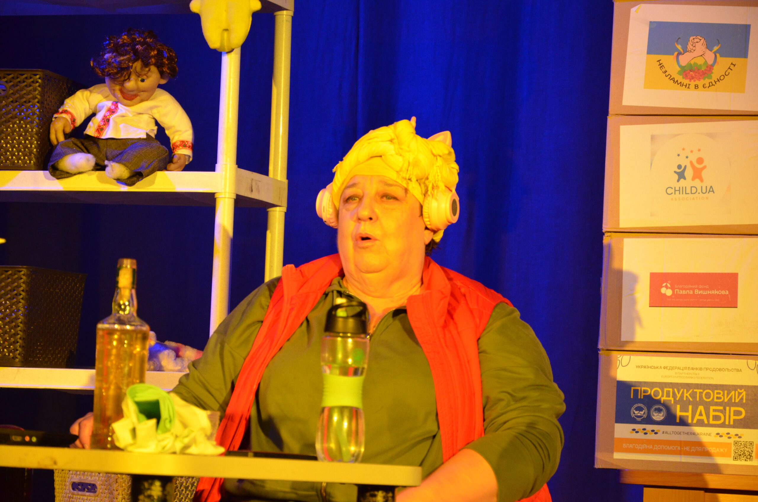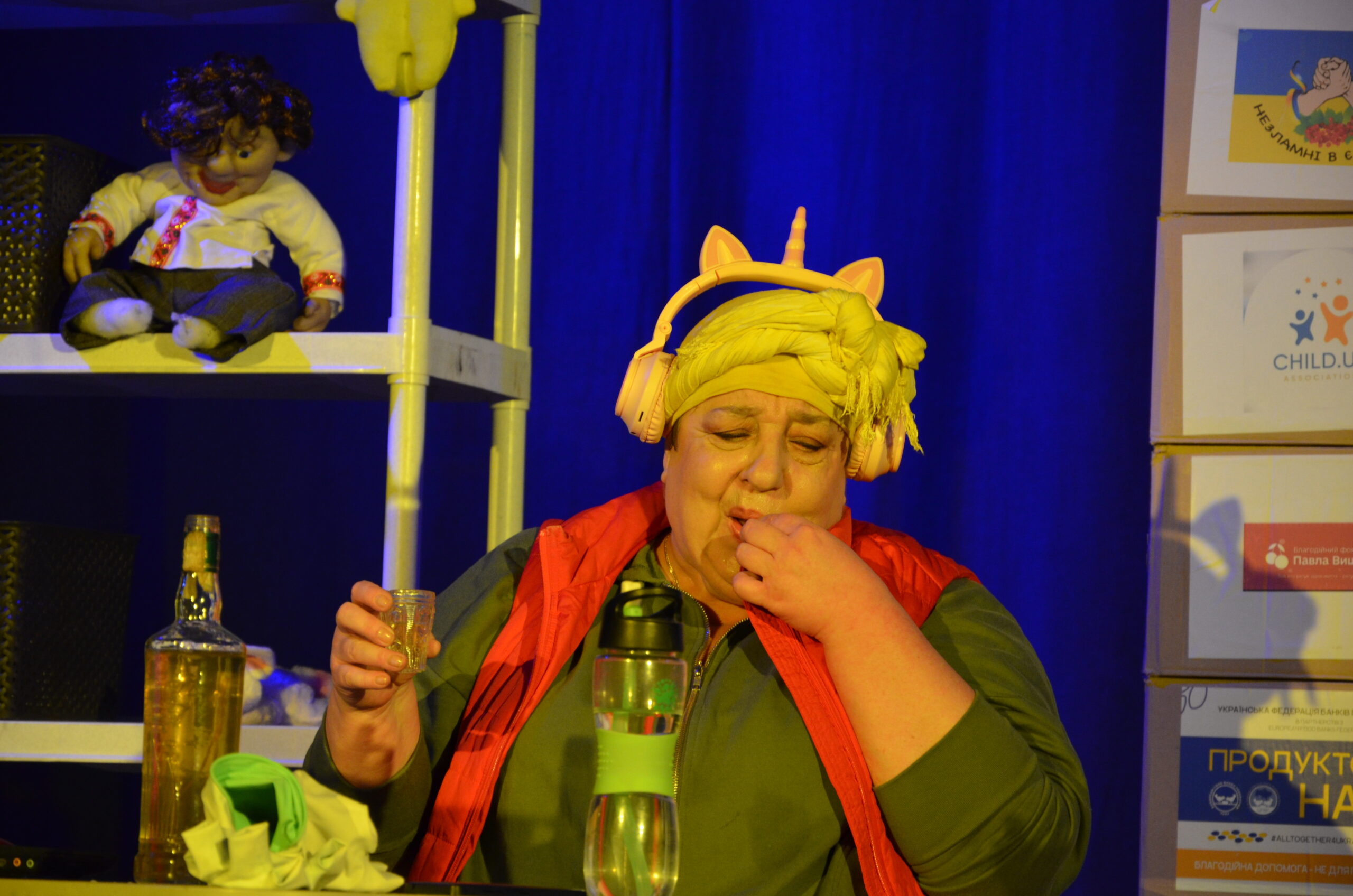 Російський прапор на вході та вода на сцені, в якій плавають іграшки та книжки. Саме це перше, що впало в око відвідувачам вистави “Буде тобі, враже, так, як відьма скаже”, в якій через історію однієї літньої жінки показано що довелося пережити мешканцям Херсона під час окупації міста російськими військами та в яких складних умовах доводиться їм жити після звільнення міста від окупантів.