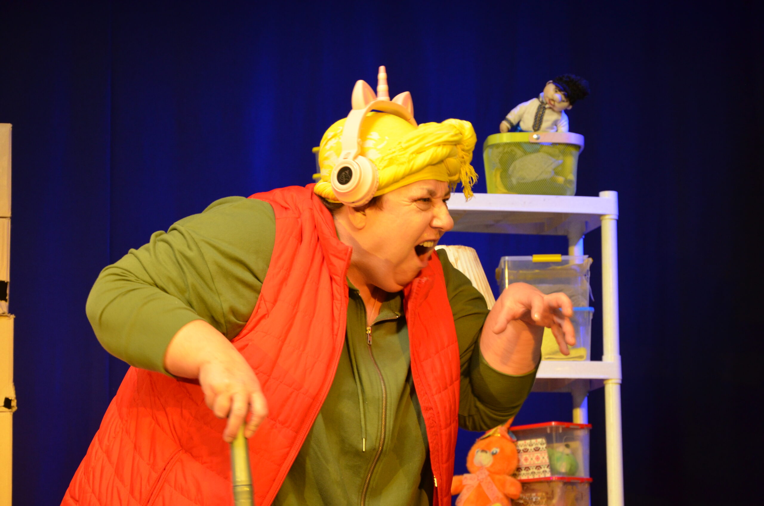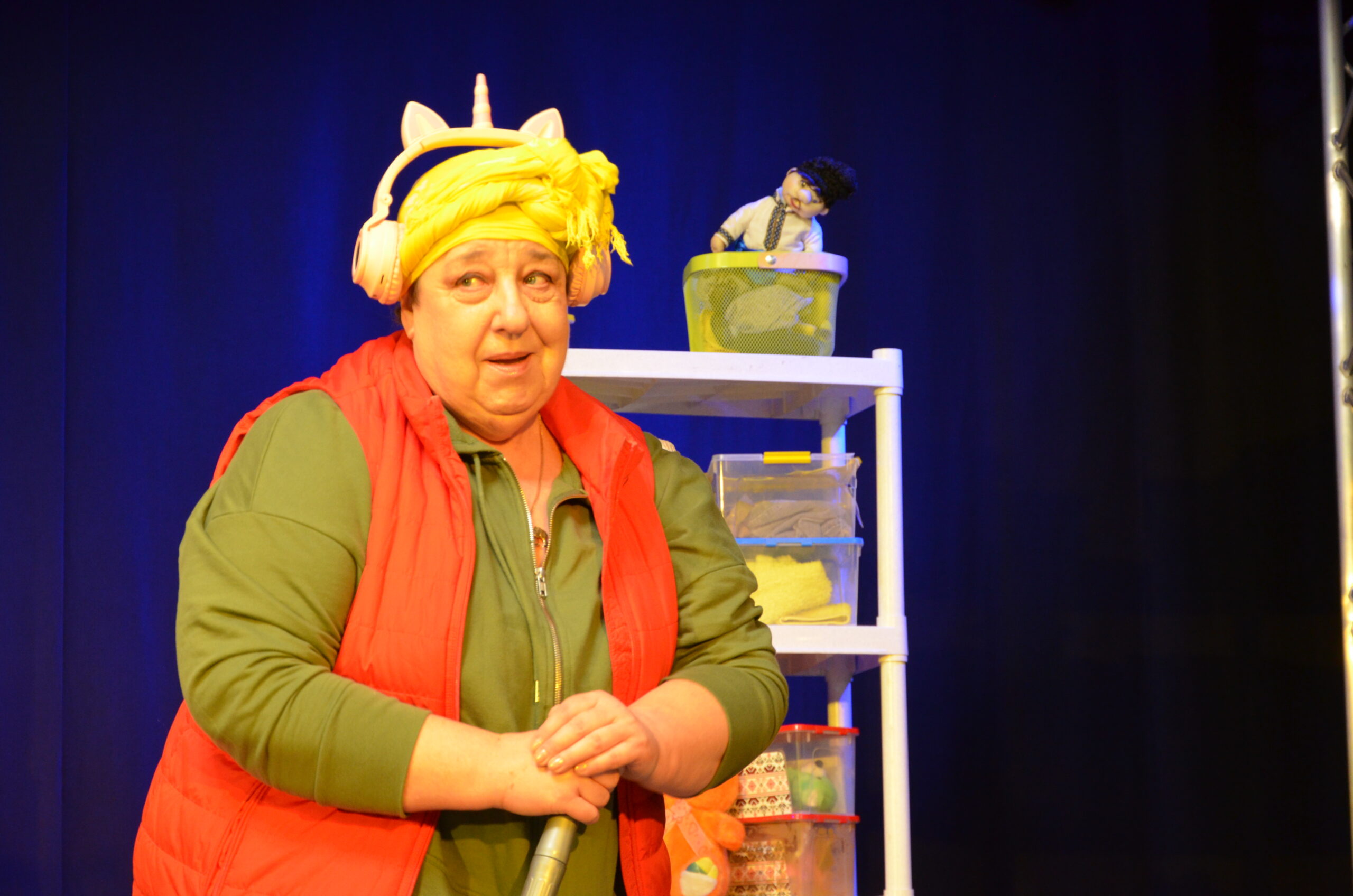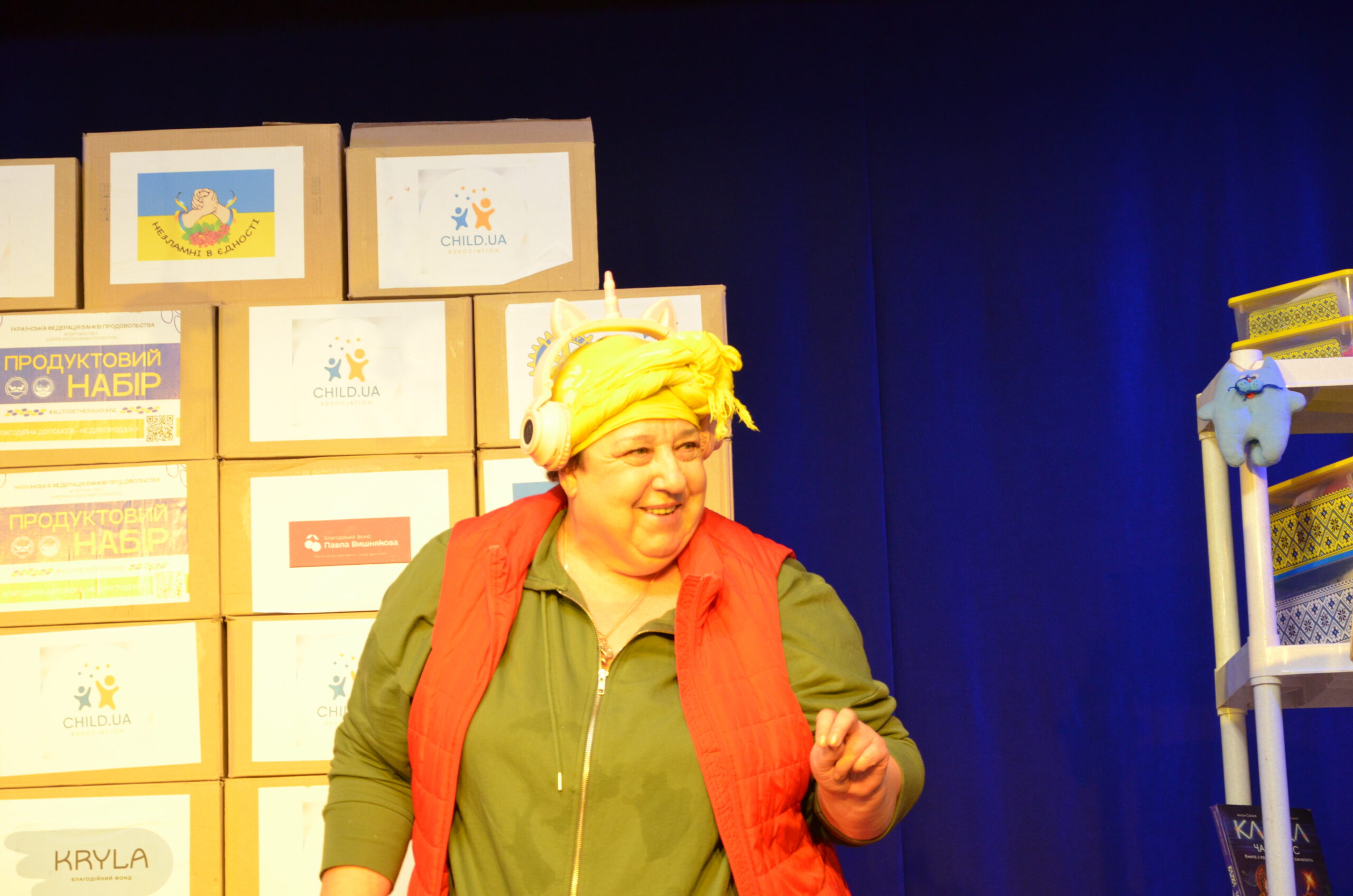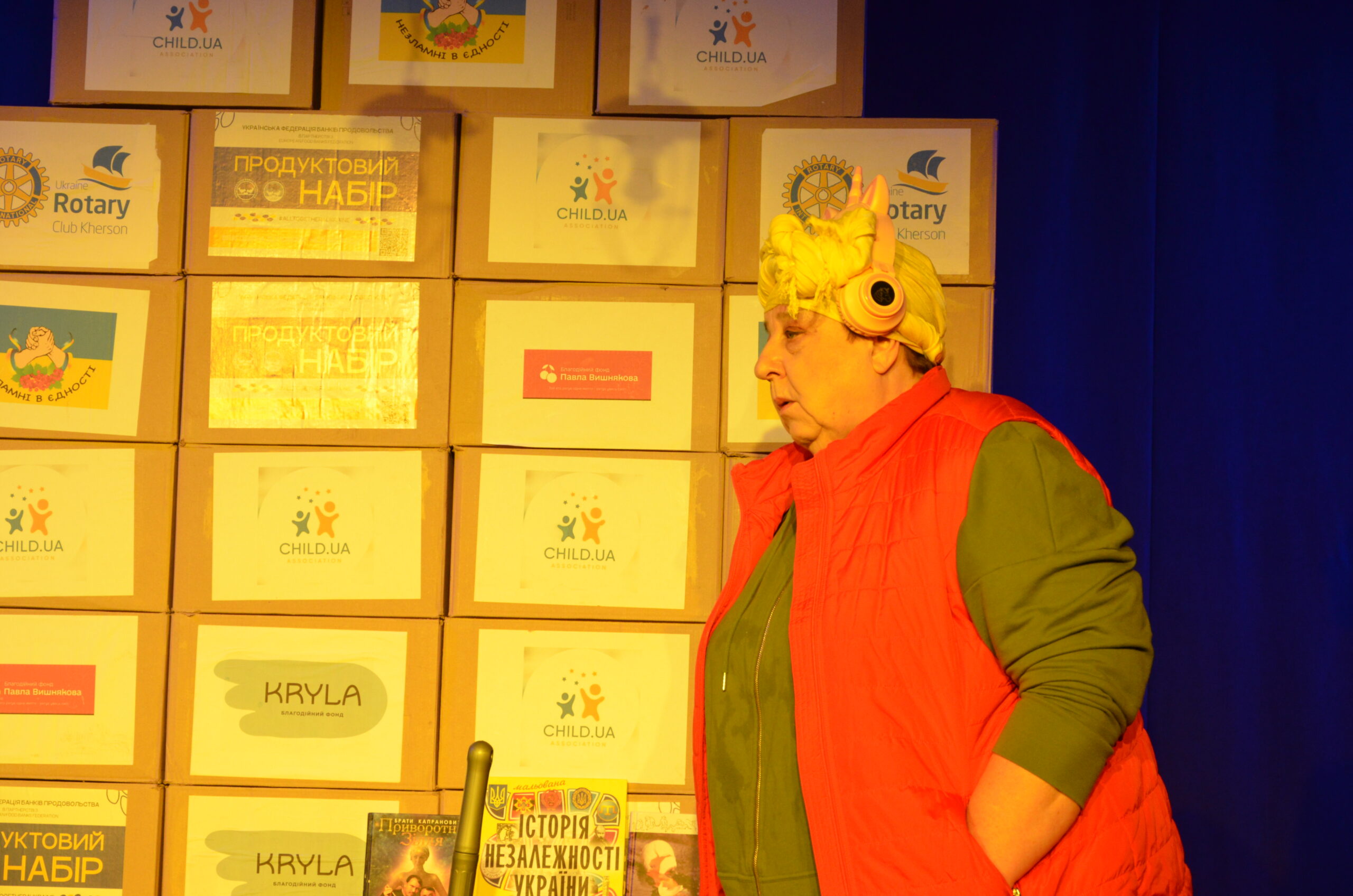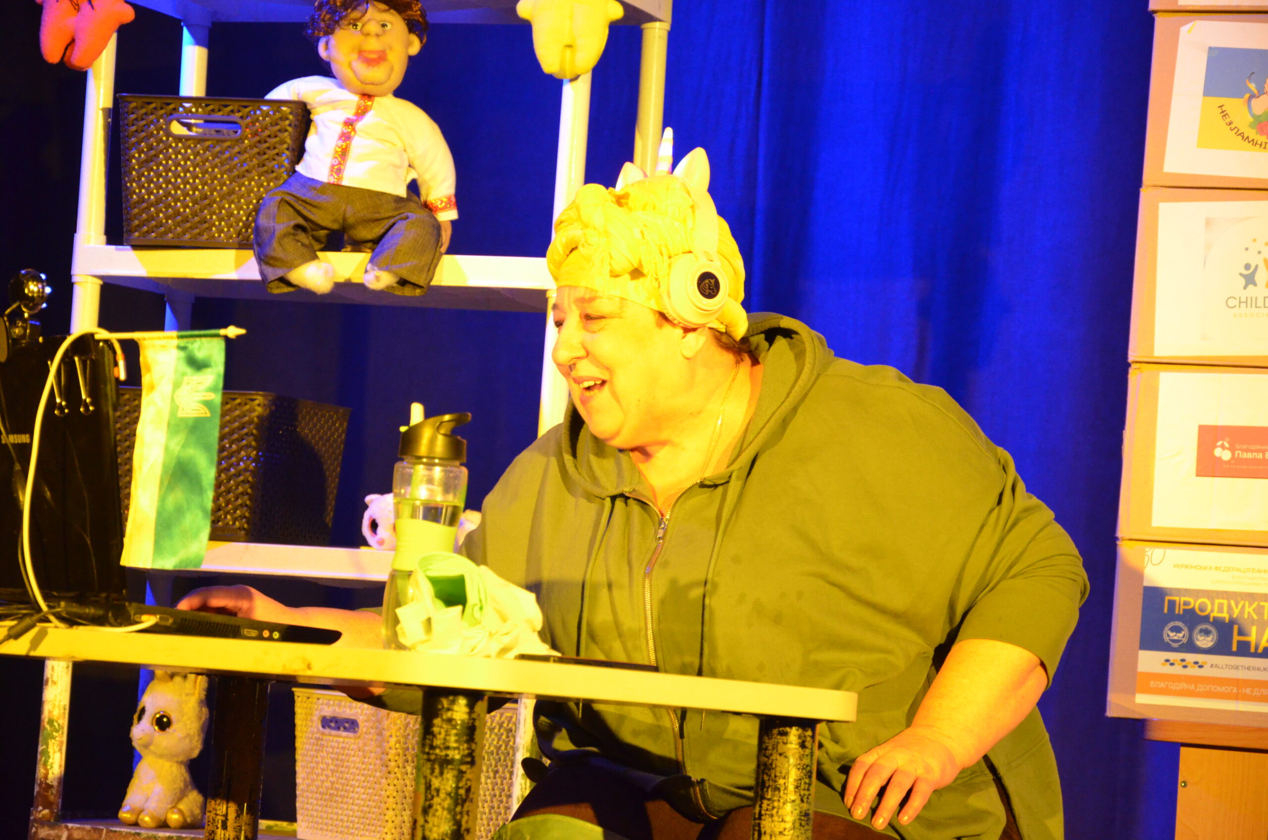 Російський прапор на вході та вода на сцені, в якій плавають іграшки та книжки. Саме це перше, що впало в око відвідувачам вистави “Буде тобі, враже, так, як відьма скаже”, в якій через історію однієї літньої жінки показано що довелося пережити мешканцям Херсона під час окупації міста російськими військами та в яких складних умовах доводиться їм жити після звільнення міста від окупантів.