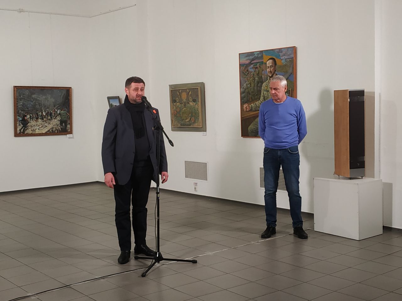 Тематика картин відображає творчу реакцію художників на події воєнного часу, зокрема опір нашого героїчного тилу – медиків, поліцейських, рятувальників, без яких неможлива боротьба і шлях до перемоги над російськими загарбниками. Це підкреслюють і назви робіт, які представлені на виставці: “В реанімації”, “Київ після прильоту”, “Охматдит після влучання”, “Вкрадене дитинство”.