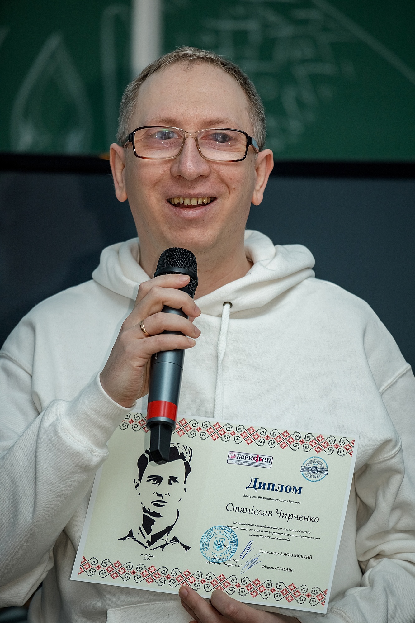 Світ українського мистецтва й літератури вкотре доводить, що справжня творчість не знає меж, а відданість справі завжди знаходить відгук у серцях людей. Цього разу в центрі уваги — звукорежисер і куратор мистецької спільноти #VivArt Станіслав Чирченко, який 18 лютого отримав престижну нагороду від міжнародного часопису «Бористен» — відзнаку імені Олеся Гончара.
