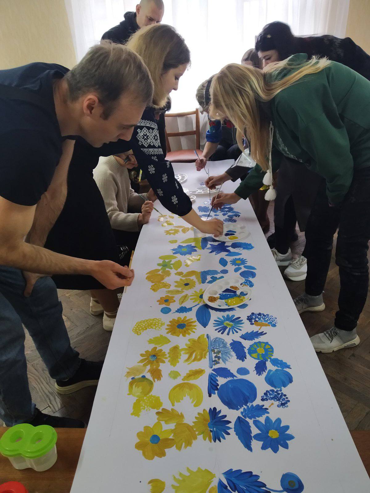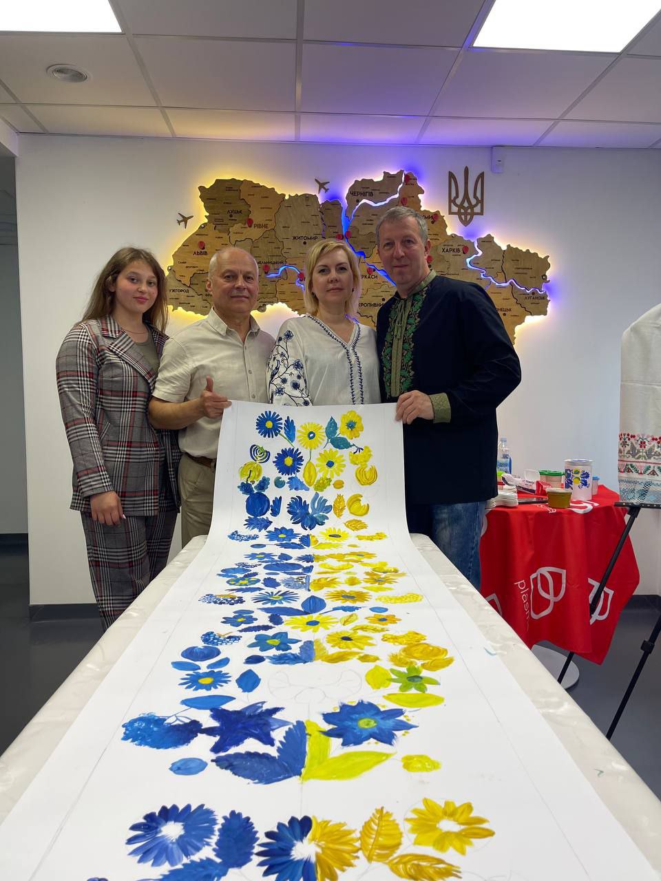 У стінах Центру, який гостинно відкрив двері для всіх охочих, поруч з ветеранами ЗСУ, освітянами, митцями, представниками влади, волонтерами та благодійниками працювали діти — вихованці гуртків “STEM club”, “ОТМ”, “Акторська майстерність” Будинку творчості дітей та юнацтва. Разом вони створювали справжній символ — рушник, у якому кожен стібок, кожна квітка в петриківському стилі була наповнена любов’ю, силою і безмежною вірою в щасливе майбутнє.
