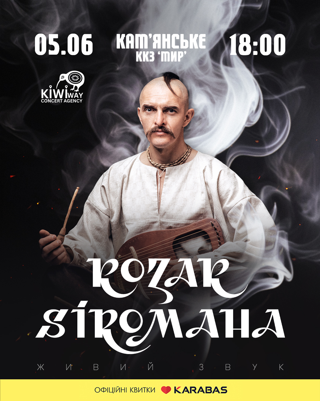 5 червня 2025 року у Кам’янському відбудеться культурна подія, яка обіцяє стати однією з найяскравіших цього літа. На сцені Кам’янського кіно-концертного залу “Мир” о 18:00 виступить KOZAK SIROMAHA — харизматичний український артист, відомий своїм самобутнім образом, енергійними виступами та глибоким національним звучанням.
