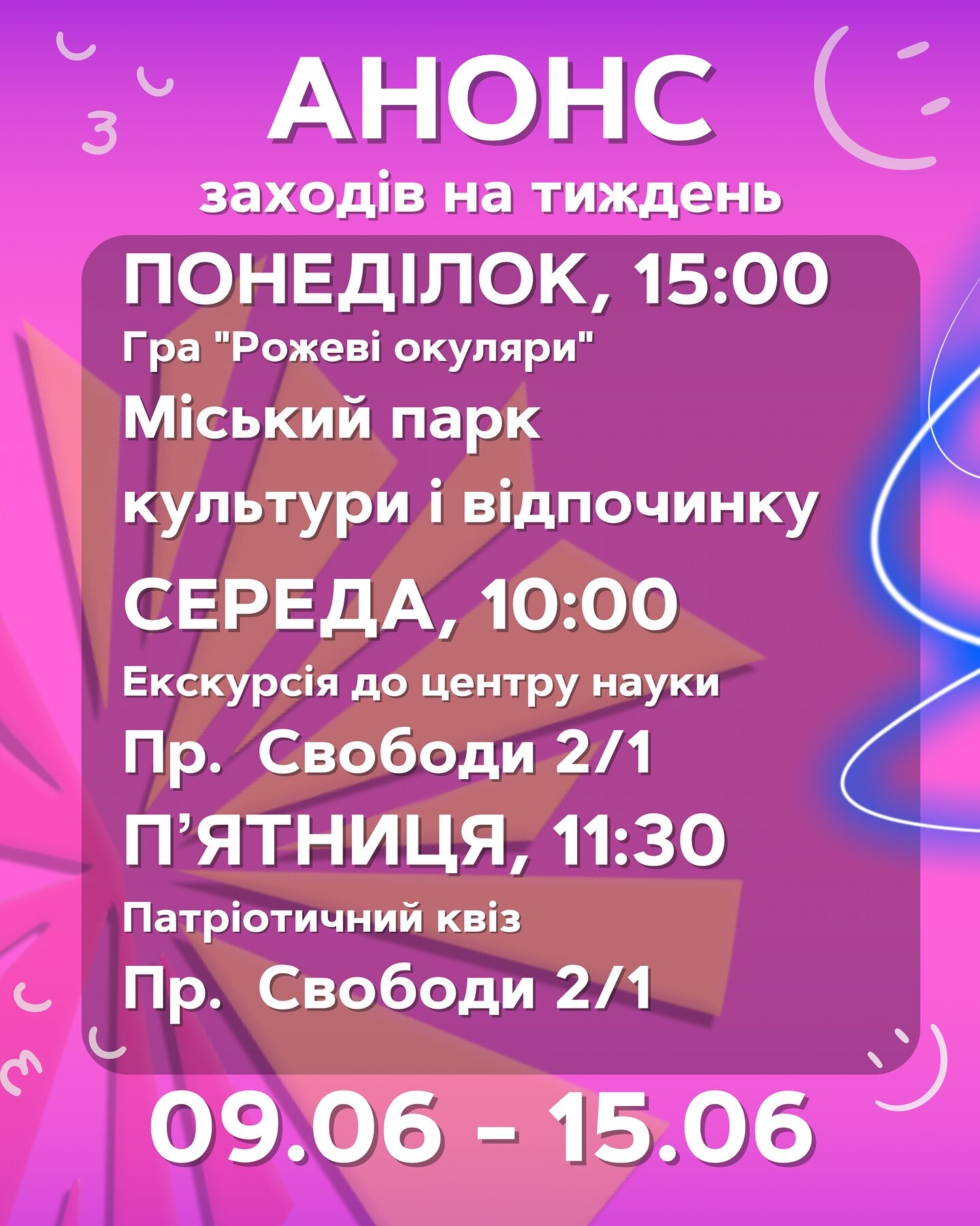 Організатори закликають молодь долучатися до заходів, брати участь активно й залучати друзів.