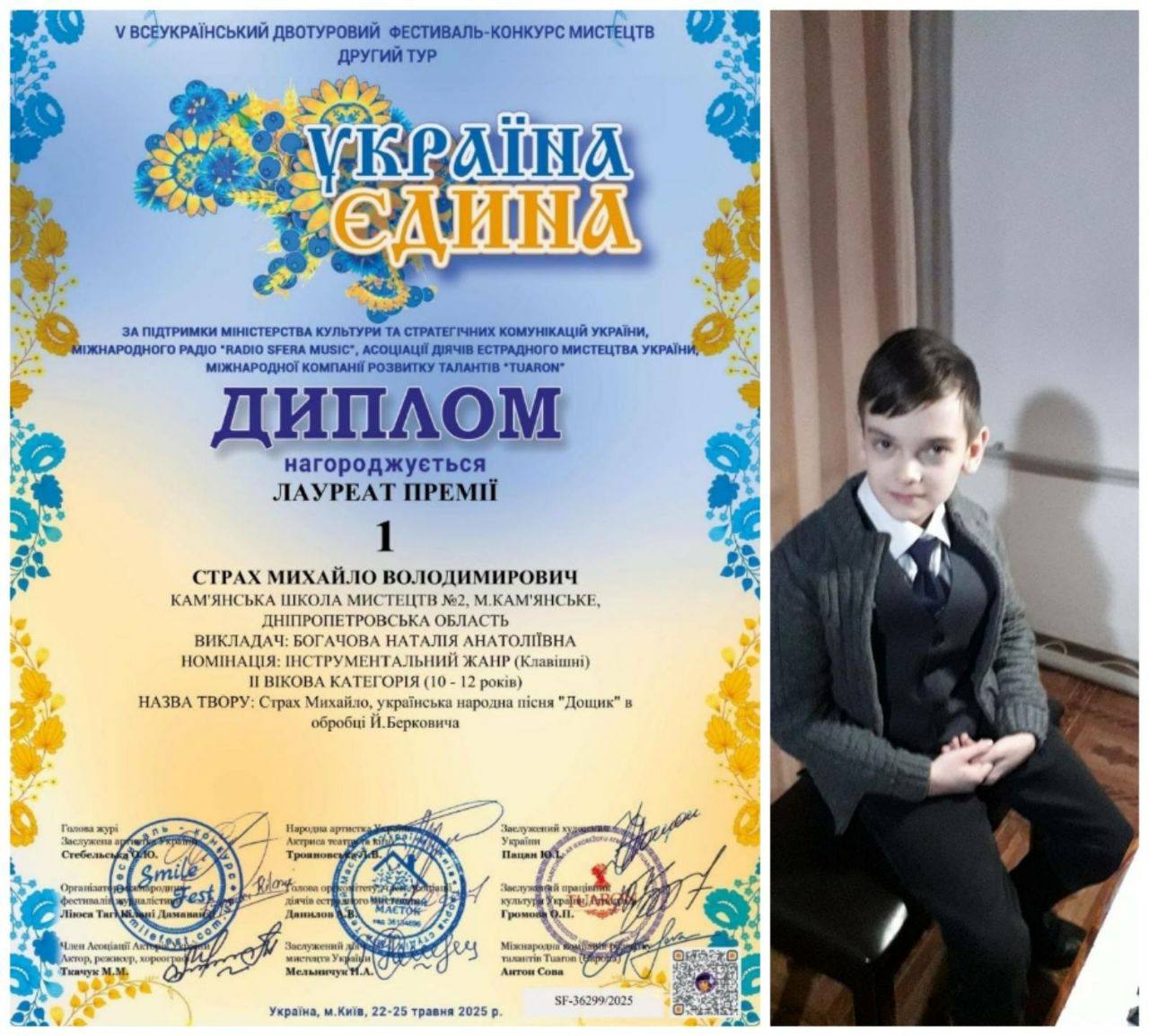 Страх Михайло – лауреат І премії у ІІ віковій категорії (10-12 років);