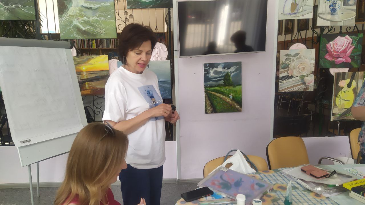 Заняття з Петриківського розпису веде Вікторія Китаєва, художниця, по-справжньому захоплена українським народним мистецтвом та самобутніми традиціями. Вікторія знайомить своїх дорослих учнів із великими талантами Петриківки, які стали всесвітньо відомими. З їх авторським стилем народного живопису. Наприклад, цього разу згадували майстриню Тетяну Гарькаву.