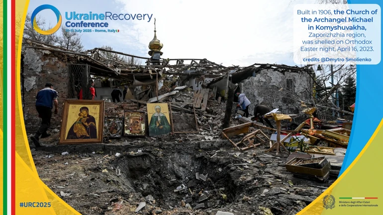 У столиці Італії, Римі, проходить фотовиставка “За об’єктивом: культура під ударом”, на знімках якої зображено Одеський собор Спасо-Преображенського собору Української православної церкви, зруйнований росіянами.