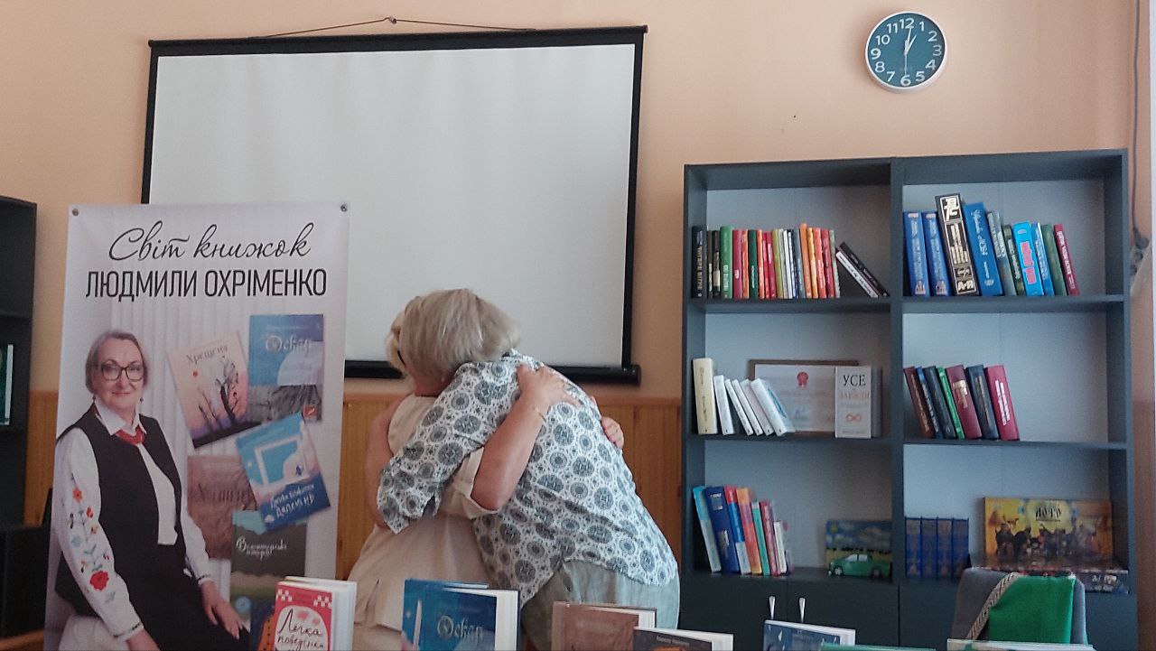 Людмила Охріменко залишила в дар бібліотеці кілька своїх книжок. Тепер вони стануть доступними усім читачам. Приємним доповненням стало й поповнення фонду виданнями від Центру підтримки переселенців “ЯМаріуполь. Кам’янське”.
