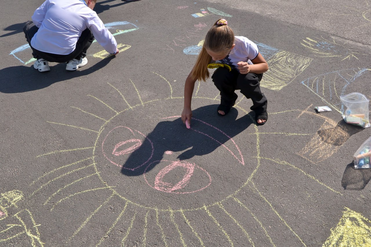 День знань цього року знову прийшов у непрості часи. Та попри тривожну реальність, свято розпочалося з вірою в мир і щасливе майбутнє. Маленькі мешканці лівобережжя озброїлися крейдою й перетворили сіру бруківку на справжню виставкову залу — із яскравими кольорами, дитячими мріями та образами добра. Дитячі руки малювали надію, що завтра буде кращим.