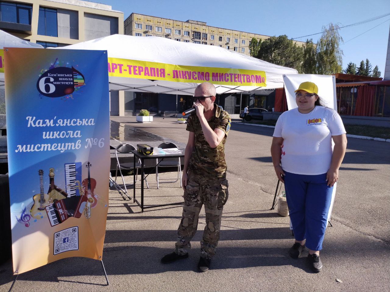 Кам’янська школа мистецтв №5 розважає у дні “Арт-терапії” багатьох кам’янчан, у тому числі – тих, які йдуть відпочивати до центрального парку. Адже на шляху вони зустрічають чудових музикантів та співаків у наметах, які розташовані просто на проспекті Шевченка.