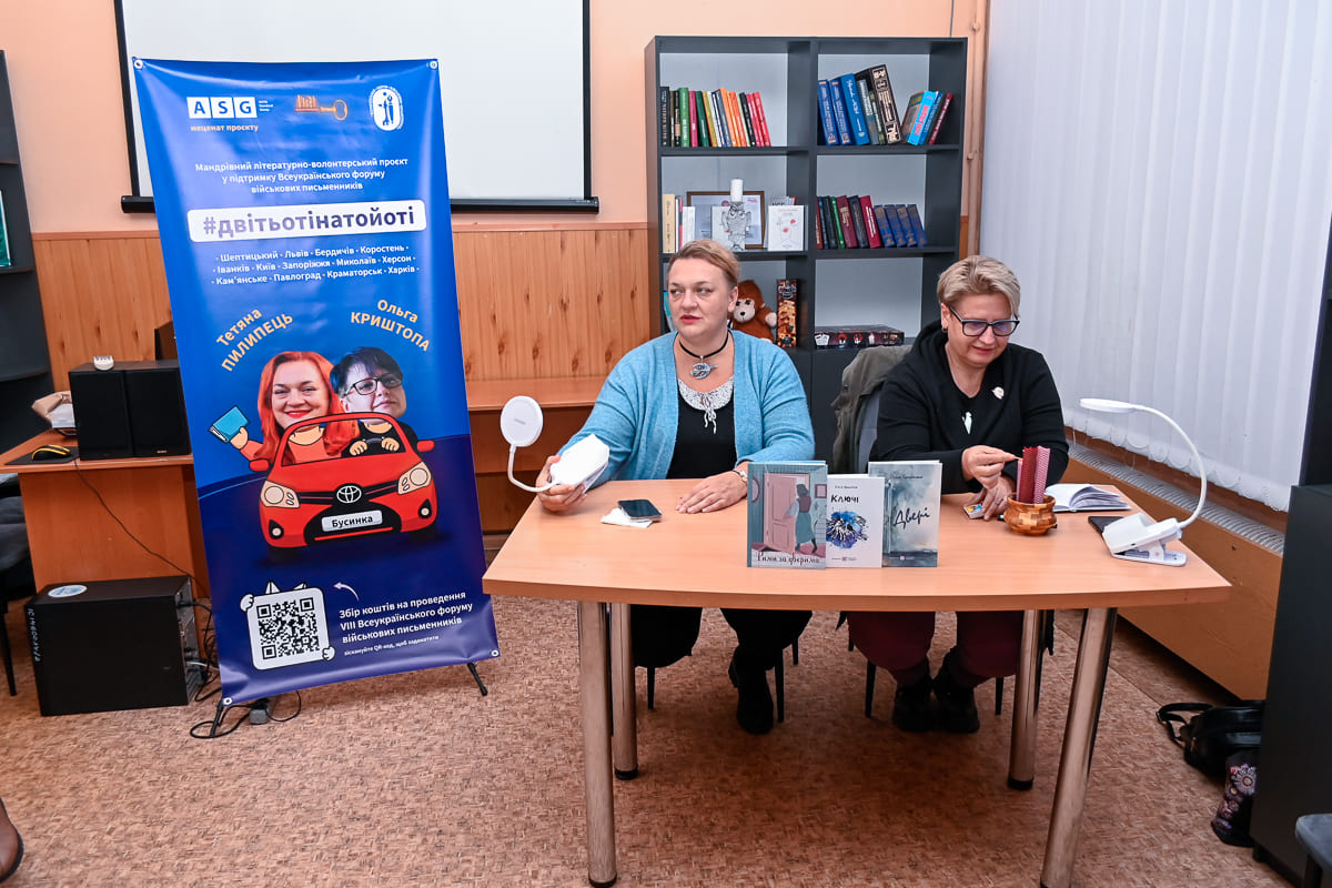 У бібліотеці на Шевченка у Кам’янському відбулася творча зустріч — вечір, що об’єднав літературу, пам’ять і людське тепло. Гостями заходу стали письменниця Ольга Криштопа та Таня Пилипець, амбасадорки українських бібліотек, які приїхали до Кам’янського в межах мандрівного літературно-волонтерського проєкту у підтримку Всеукраїнського форуму військових письменників.