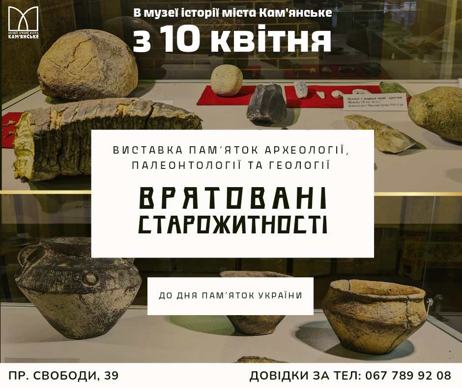 10 квітня в Музеї історії міста Кам’янське буде відкрито нову виставку, яка має назву “Врятовані старожитності”.