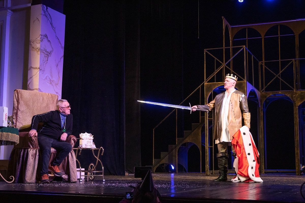 А ще офіційно, за всіма заковами лицарського статуту, Сергія Анатолійович було прямо на сцені посвячено в Лицарі класики, адже всім відомо, що він є палким прихильником класичного репертуару і саме в його постановці на сцені нашого театру ожили п’єси Мольєра, Шекспіра, Теннессі Вільямса та Агати Крісті.