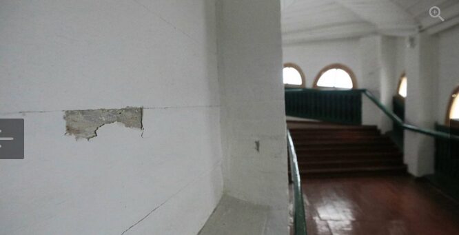 Корпус № 67 (Аннозачатіївська церква): зафіксовано часткове руйнування елементів фасаду.