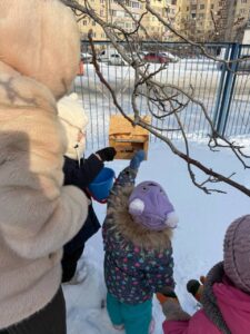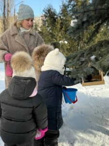 Зима створює складні умови для птахів, ускладнюючи пошук їжі через сніг та морози. Щоб допомогти пернатим друзям, гості разом із дітьми та педагогами встановили годівнички та наповнили їх насінням, рятуючи пташок від голоду.