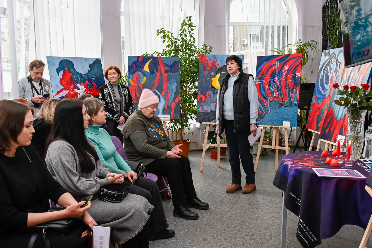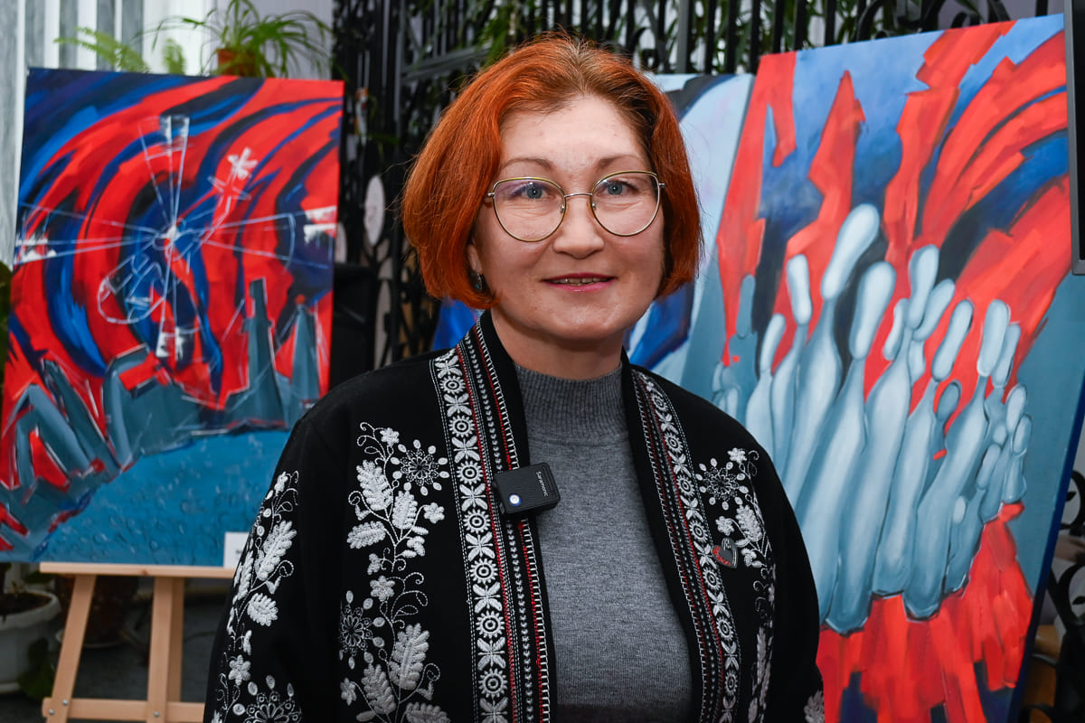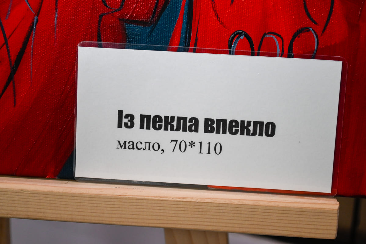 Художниця, яка за фахом є вчителькою та психологом, вразила присутніх своєю щирістю та відкритістю. Під час зустрічі вона детально розповіла про кожну із своїх 13 картин, у яких відображено кожен момент, який вона пережила у Маріуполі.