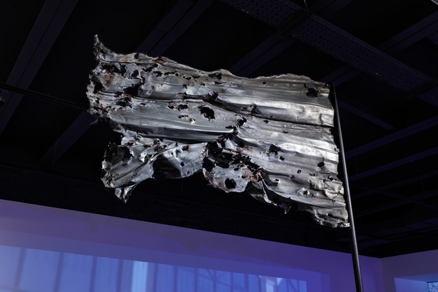 У дніпровській галереї “Артсвіт”, що розташована за адресою: узвіз Крутогірний, 21-а, експонують надзвичайний мистецький об’єкт. Скульптура під назвою “Прапор” є творінням відомого митця Нікіти Кадана, який ще з 2014 року працює над серією робіт, що глибоко рефлексують над трагічними подіями сучасної російсько-української війни.