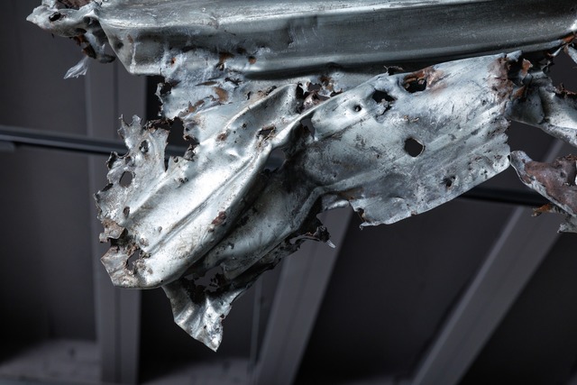 Художник свідомо обирає матеріали, що пройшли крізь пекло війни: