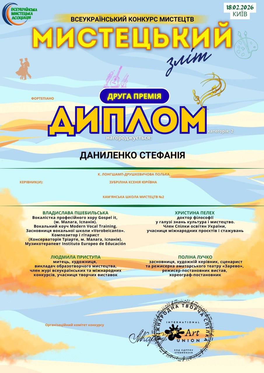 Даниленко Стефанія — відзначена дипломом лауреата ІІ премії;