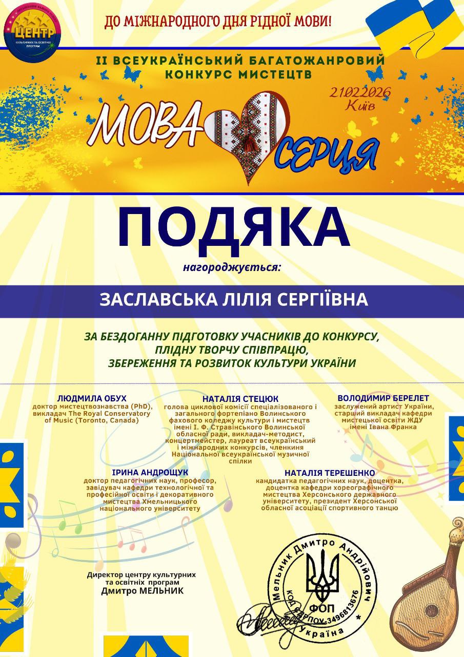 Під керівництвом викладача Світлани Кононенко Михайлик продемонстрував майстерну гру на блокфлейті, підкоривши журі своєю щирістю та технікою. Особлива вдячність концертмейстеру Лілії Заславській, яка стала надійною опорою для юного артиста під час конкурсу.