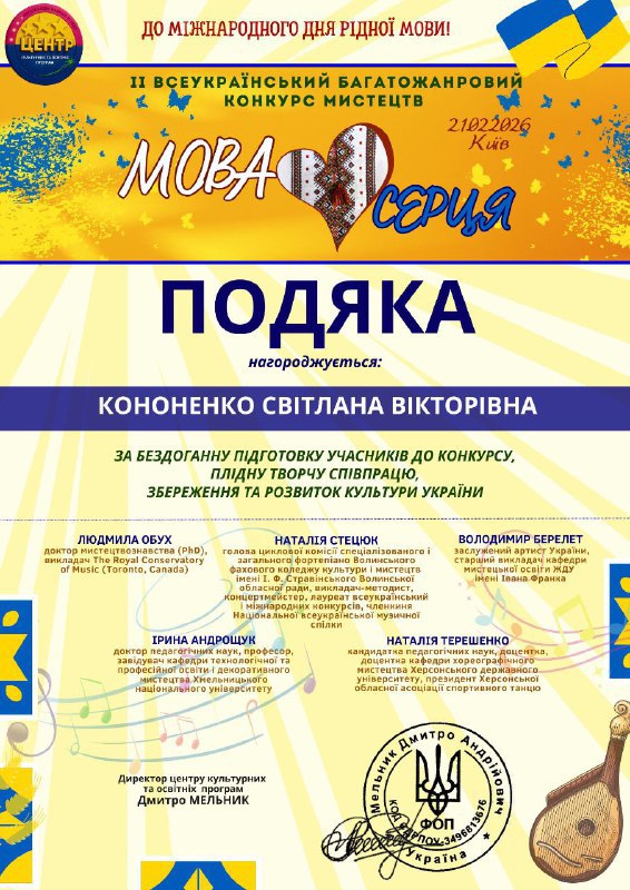 Михайлику, нехай твоя «мова серця» через музику звучить ще голосніше! Бажаємо впевнено йти до нових творчих вершин!
