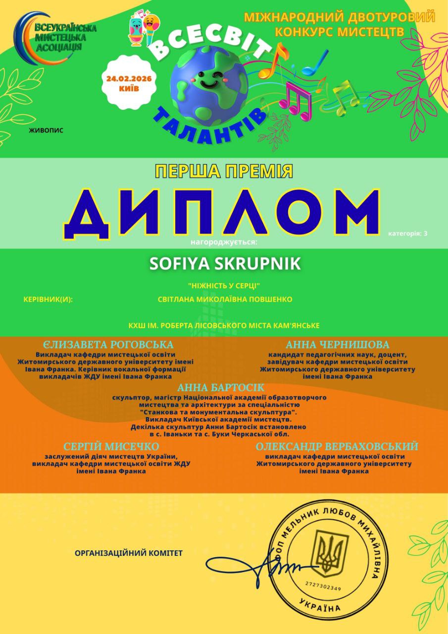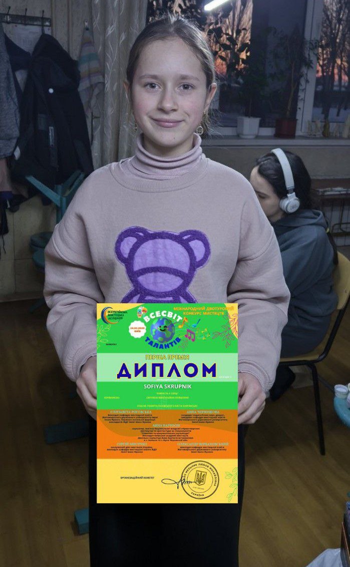 Софія Скрипник — нагороджена дипломом за 1 премію.