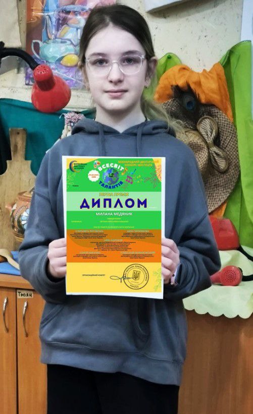Милана Медяник — відзначена дипломом за 1 премію.