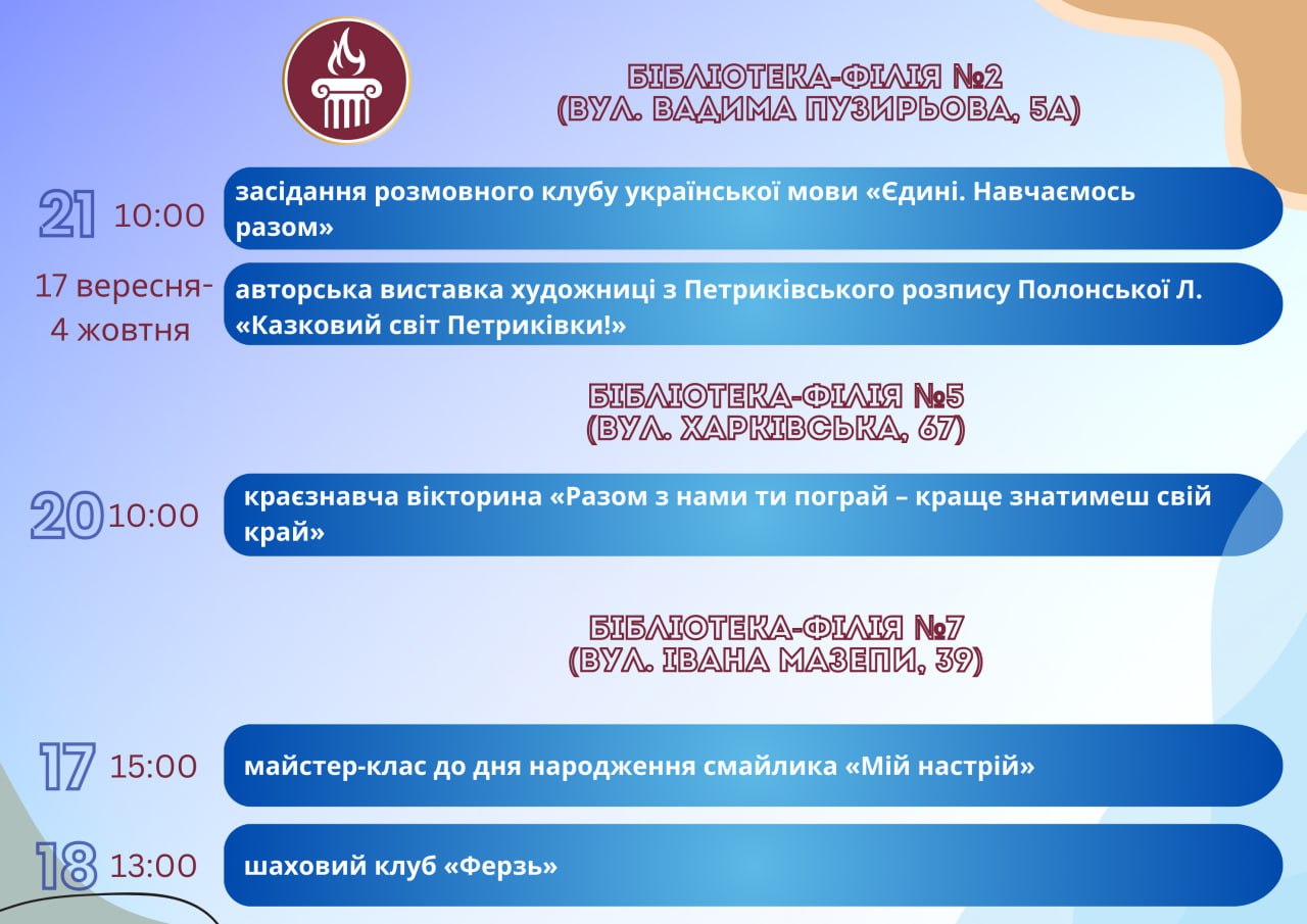 Програма заходів у закладах культури міста Кам’янське