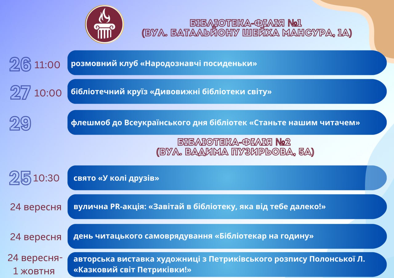Програма заходів у закладах культури міста Кам’янське