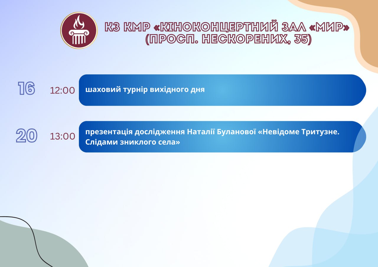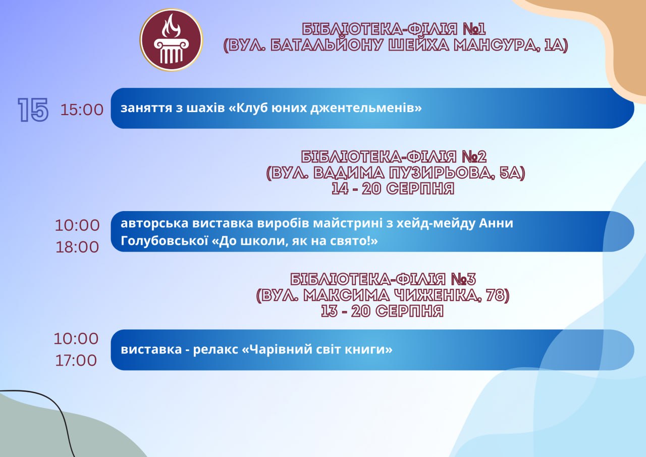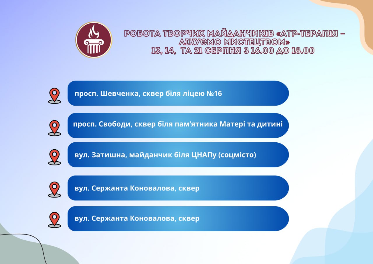 Головна Афіша Програма заходів у закладах культури міста Кам’янське 20 Серпня, 2025 23:00 Вікові обмеження 0+ З 13 по 20 серпня