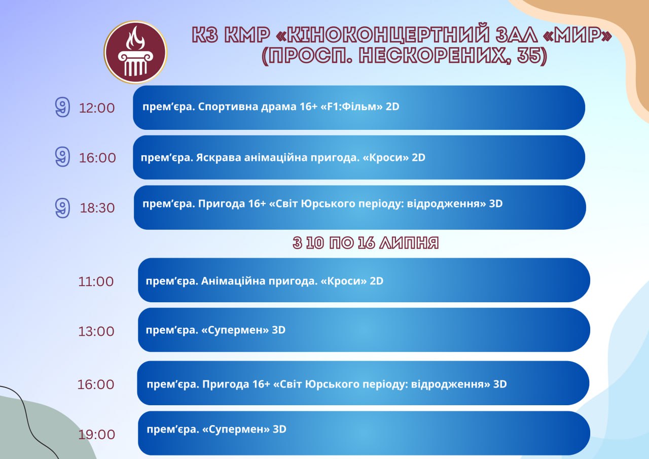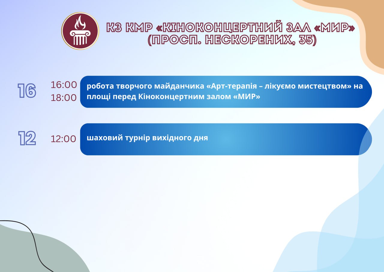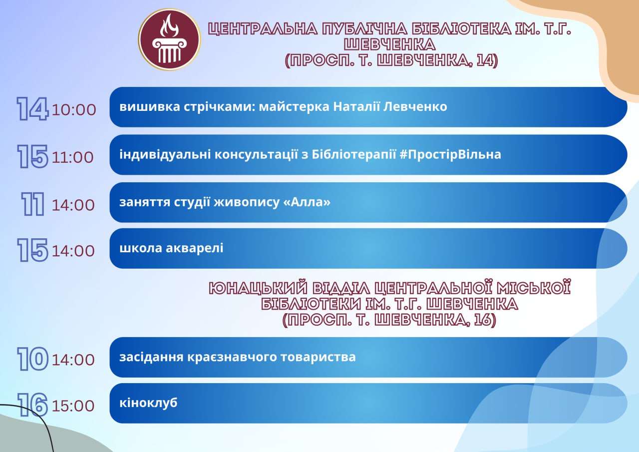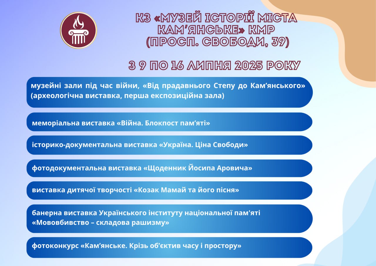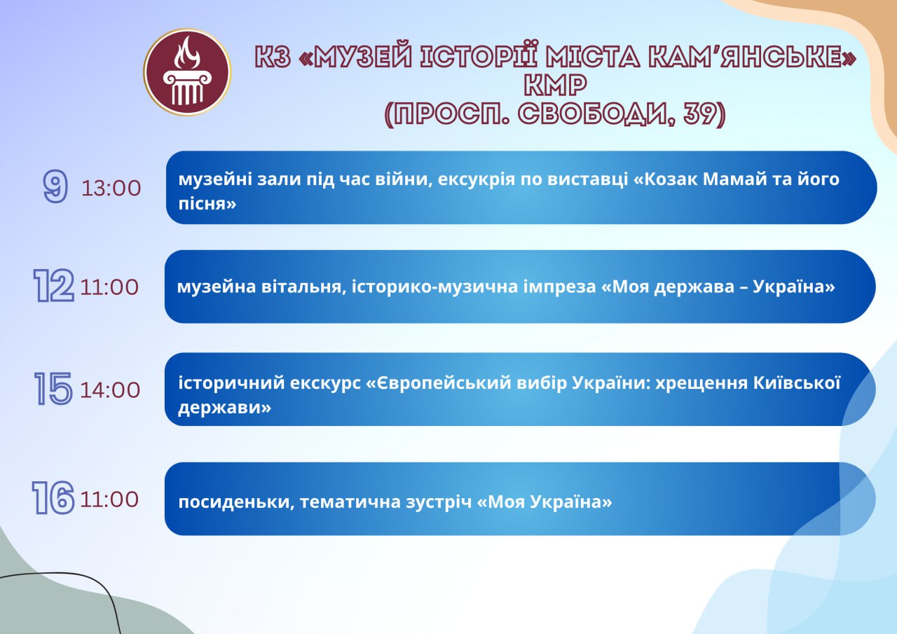 Головна Афіша Програма заходів у закладах культури міста Кам’янське 16 Липня, 2025 23:00 Вікові обмеження 0+