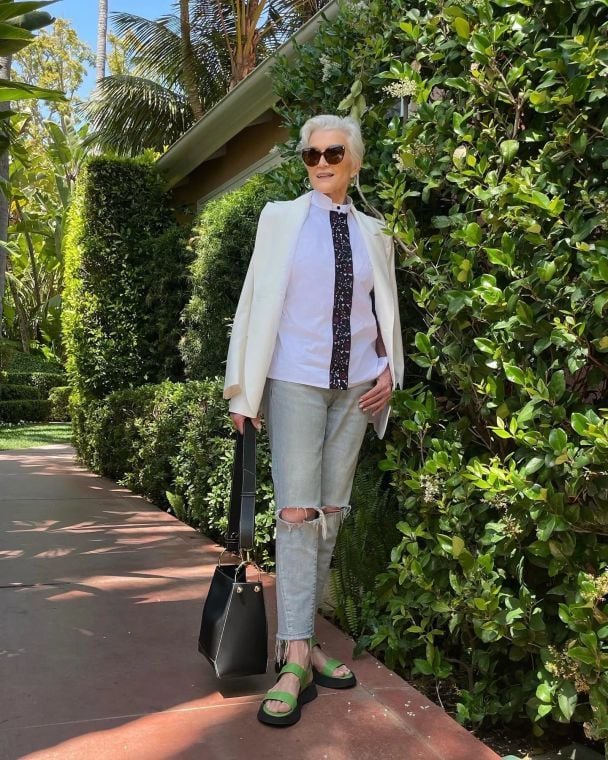 Мэй Маск, мама Илона Маска, модель и бизнесвумен, также не осталась в стороне от моды на вышиванки. В ее гардеробе можно найти платье от украинского бренда Kris Maran, а также белую блузку с вышивкой. Еще одним элементом ее гардероба стало длинное вышитое платье от Юлии Магдич, вышитое синими нитями, что добавляет образу утонченности и элегантности.