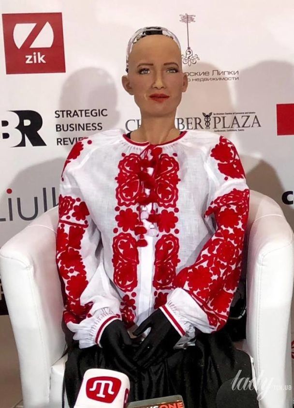 Даже робот с искусственным интеллектом София, разработанный компанией Hanson Robotics, примерила украинскую вышиванку. Во время бизнес-форума Olerom Forum One в Киеве в 2018 году она появилась в белоснежной вышиванке с красной вышивкой, сочетая ее с черной юбкой и черными перчатками. Ее образ, без сомнения, произвел впечатление на всех присутствующих.