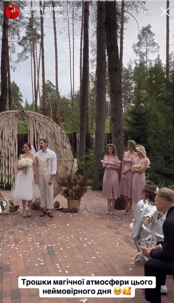 Свадьбу Ксений Вертиинская и Игорь Рубашкин сыграли под открытым небом в живописном лесу близ Киева в кругу ближайших друзей и родственников. Среди гостей присутствовали знаменитый папа Ксении, актриса Дарья Петрожицкая и Лилия Ребрик с мужем и детьми. Отметим, что Лилия Ребрик, неоднократно игравшая на одной сцене с новобрачными, была ведущей и тамадой на этом празднике.