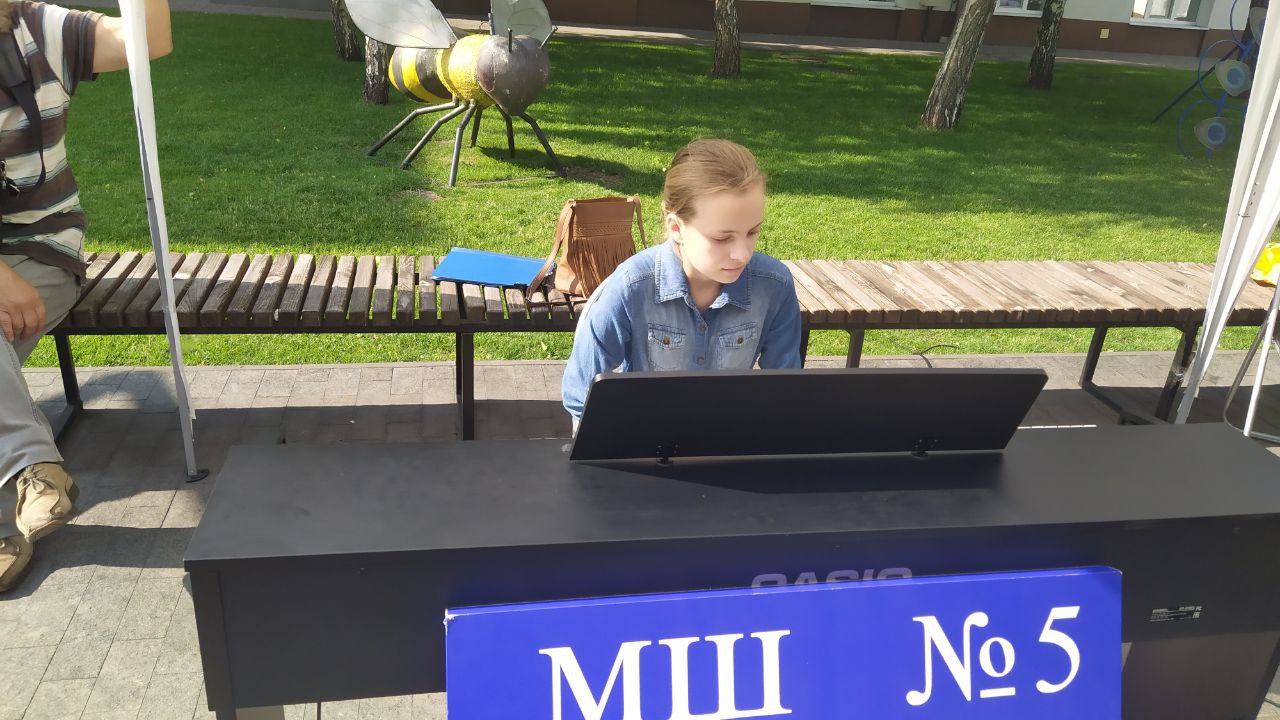 Они с удовольствием играли для собравшихся здесь горожан. Преподаватель музыки Илона Задорожная немного волновалась и хвалила своих одаренных учеников. В это время зрители сидели на скамейках, слушали и наслаждались концертом.