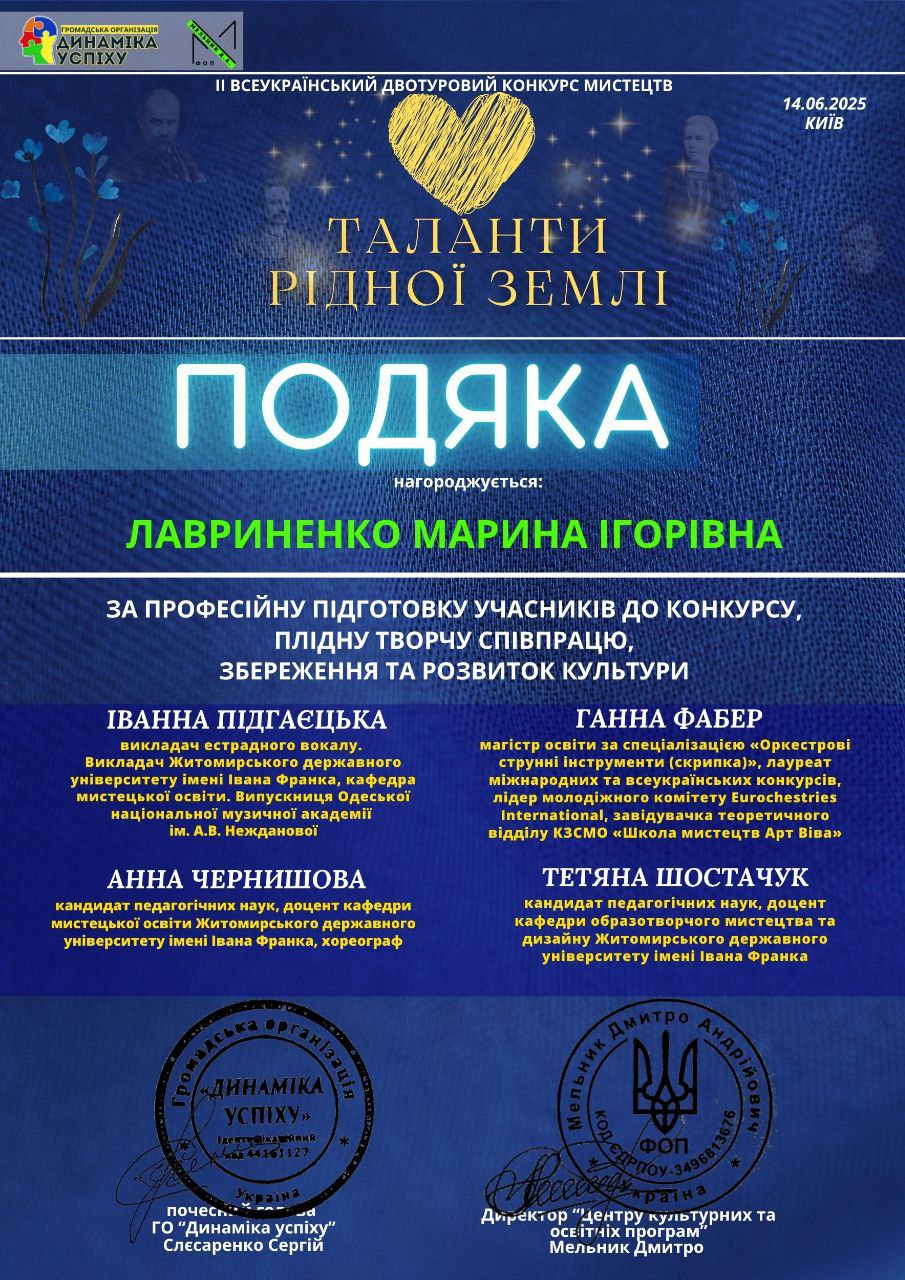 Учебный год уже закончился, но победы продолжают радовать нас! Ученики Каменской школы искусств №6 достигли высоких результатов во II Всеукраинском двутурном конкурсе искусств «Таланты родной земли».
