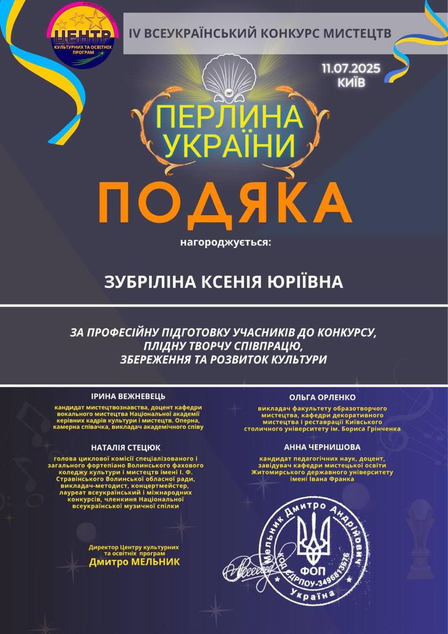 11 июля в дистанционном формате состоялся IV Всеукраинский конкурс искусств «Жемчужина Украины» (г.Киев), который проводился для поддержки юных творцов.