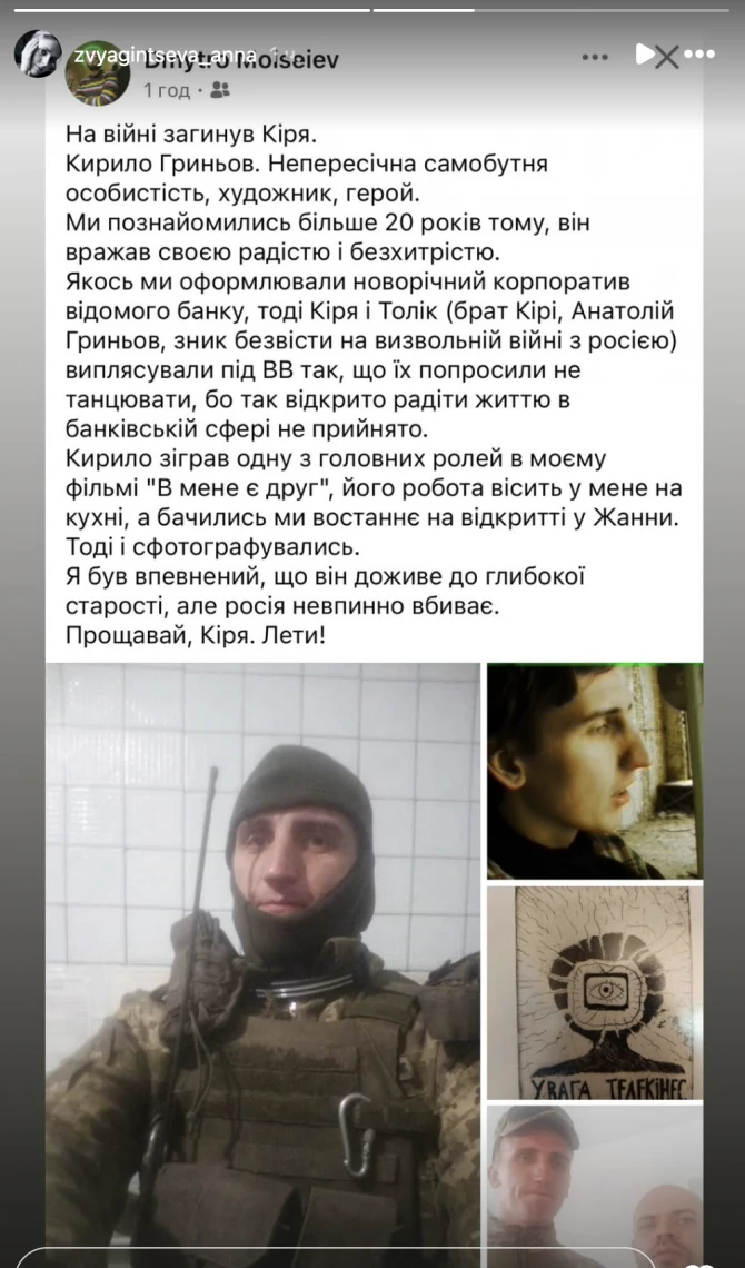 На фронте погиб художник и военнослужащий Вооруженных сил Украины Кирилл Гринев. О его смерти сообщила в instagram художница Анна Звягинцева, также эту информацию подтвердили друзья и коллеги мастера.